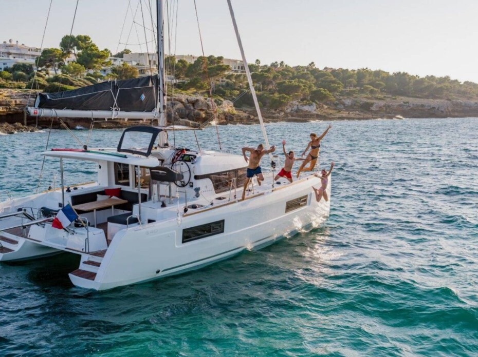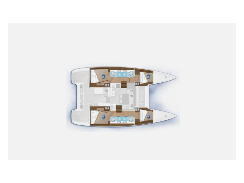Katamaran Lagoon 40 Mary Grace, Baujahr 2021, liegt im Lefkas, D-Marin, Ionisches Meer, Griechenland vor Anker. Es verfügt über 4 + 2 Kabinen und bietet Platz für 8 + 2 Personen mit 4 Toiletten. Bettwäsche und Küchenausstattung sind im Preis inbegriffen.