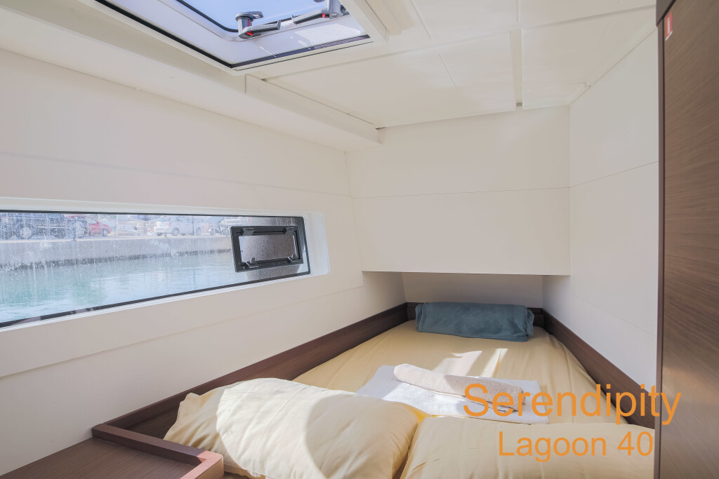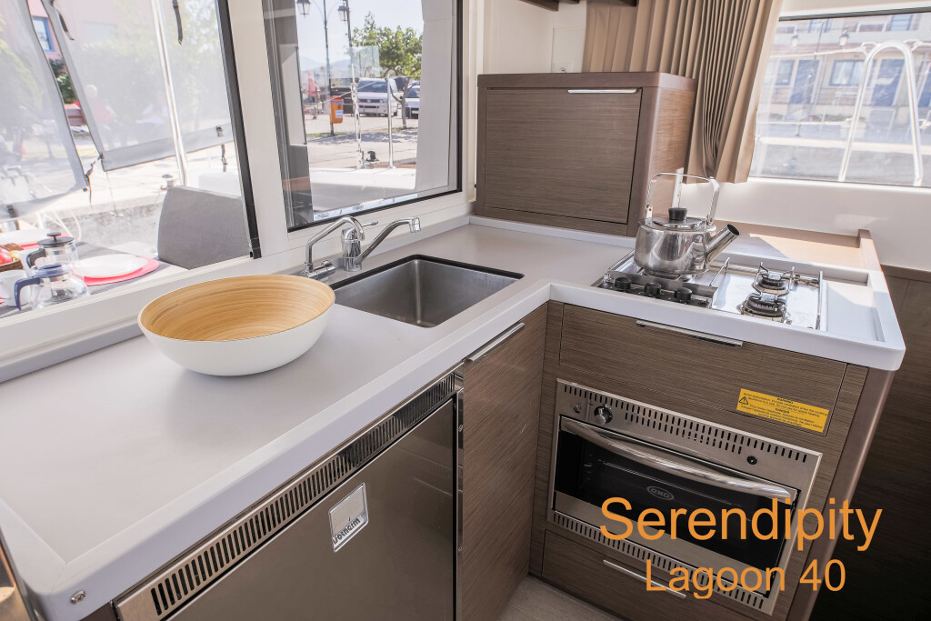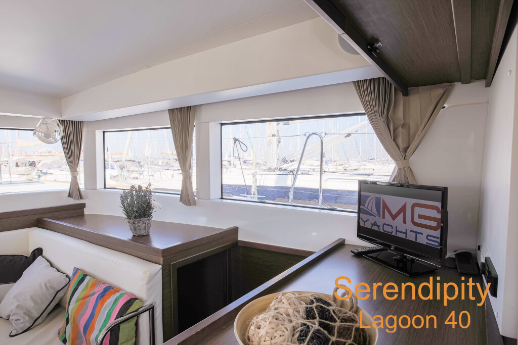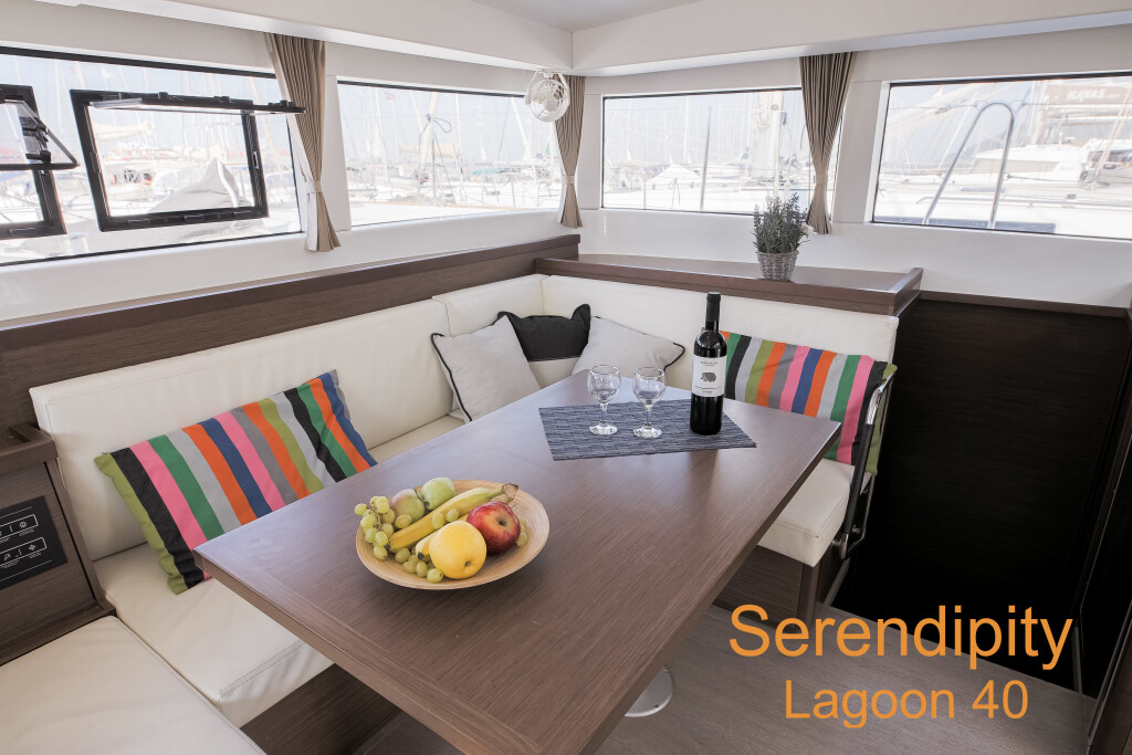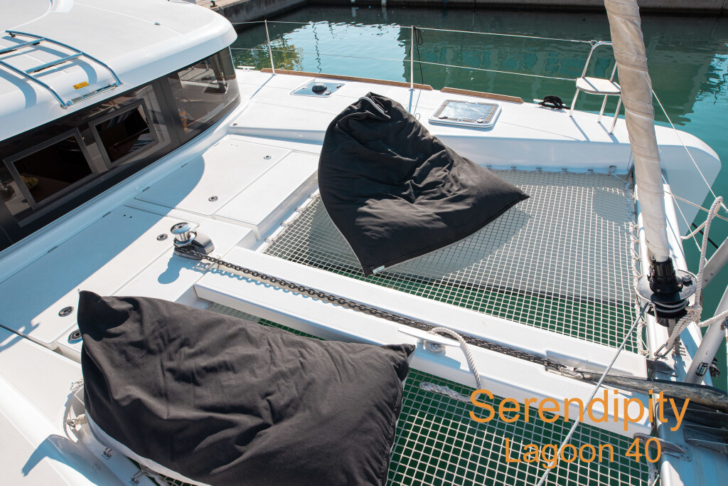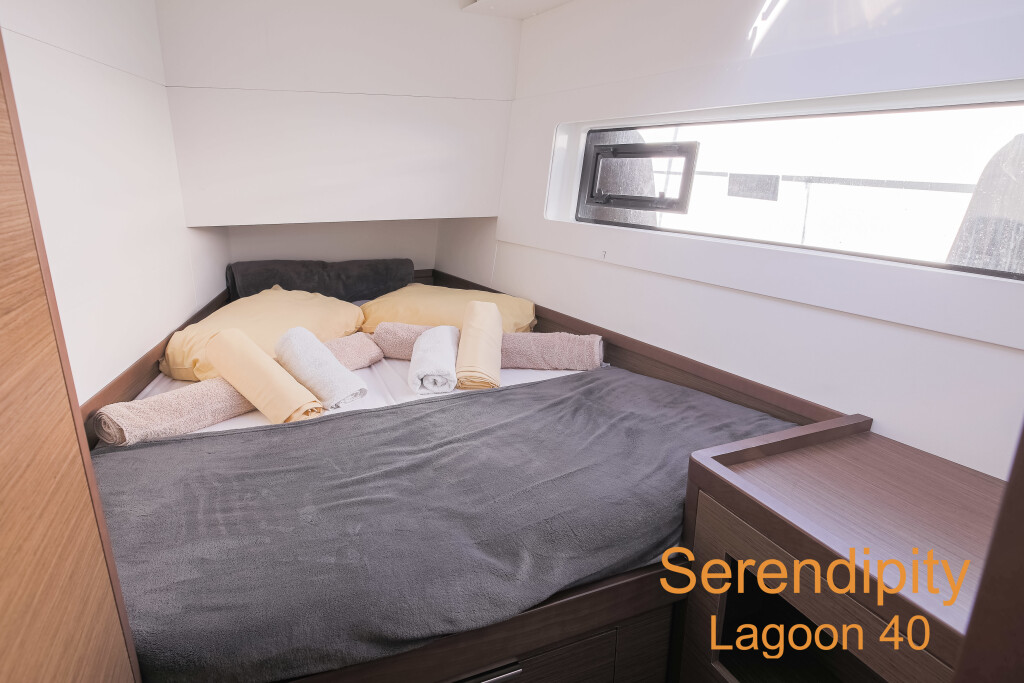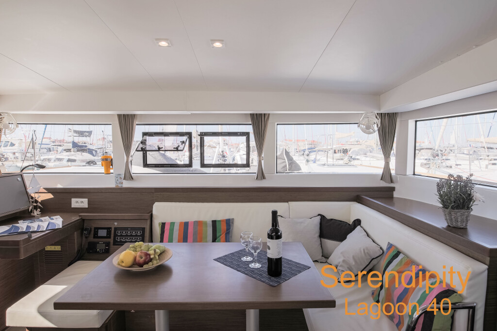 Katamaran Lagoon 40 Serendipity, Baujahr 2018, liegt im Athens, Alimos marina, Peloponnes, Griechenland vor Anker. Es verfügt über 4 + 2 Kabinen und bietet Platz für 8 + 2 + 2 Personen mit 4 + 1 Toiletten. Bettwäsche und Küchenausstattung sind im Preis inbegriffen.