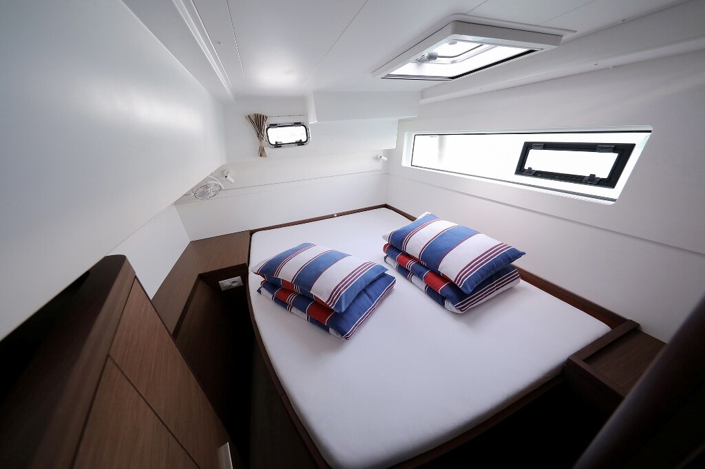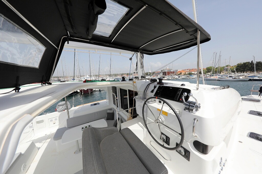 Katamaran Lagoon 40 Wild Cat, Baujahr 2018, liegt im Marina Šangulin, Biograd, Zadar & Umgebung, Kroatien vor Anker. Es verfügt über 4 + 2 Kabinen und bietet Platz für 8 + 2 + 2 Personen mit 4 Toiletten. Bettwäsche und Küchenausstattung sind im Preis inbegriffen.