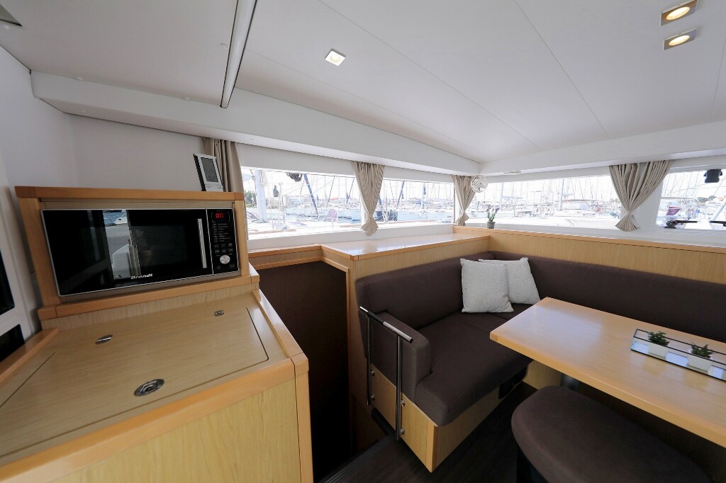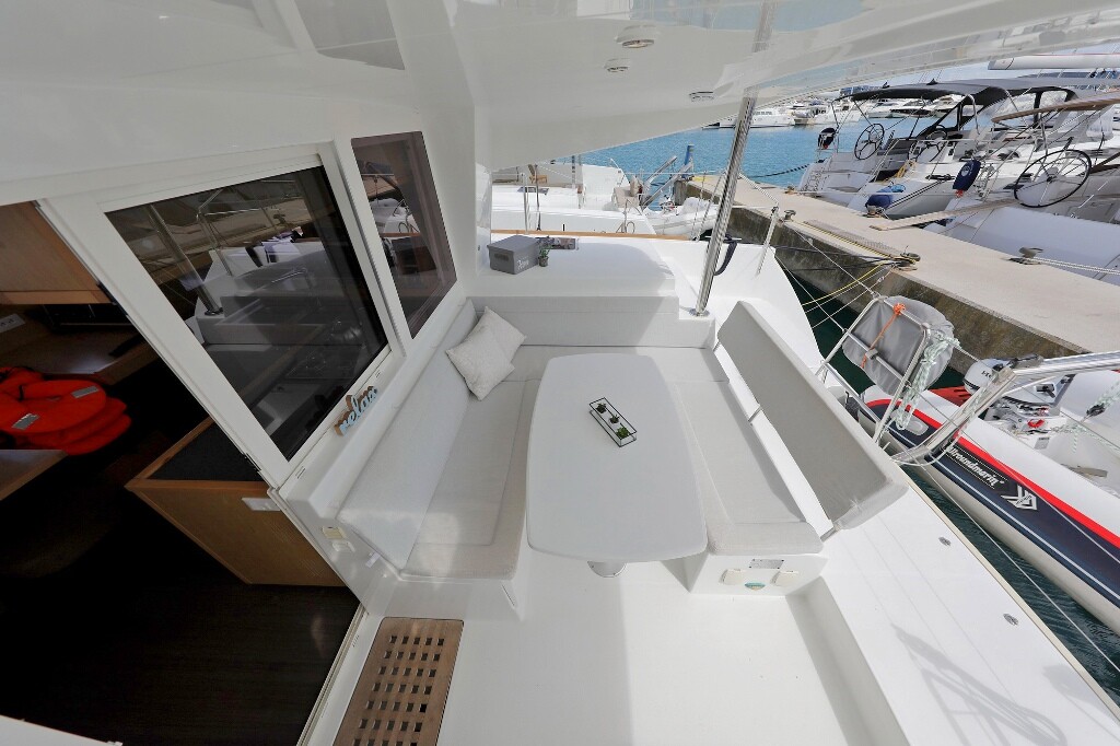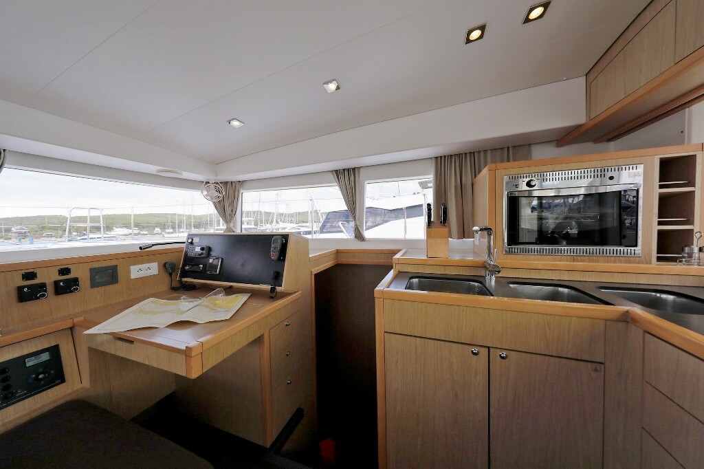 Katamaran Lagoon 400 S2 Maja V, Baujahr 2013, liegt im Sukosan, D-Marin Dalmacija Marina, Zadar & Umgebung, Kroatien vor Anker. Es verfügt über 4 + 2 Kabinen und bietet Platz für 8 + 2 + 2 Personen mit 4 Toiletten. Bettwäsche und Küchenausstattung sind im Preis inbegriffen.