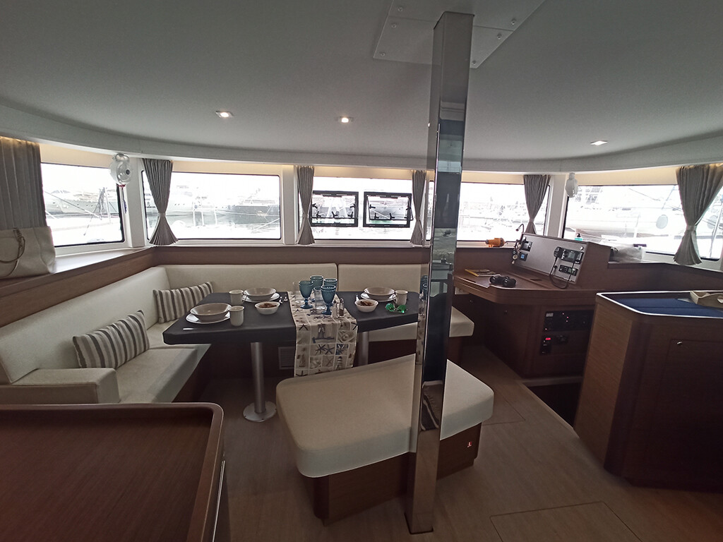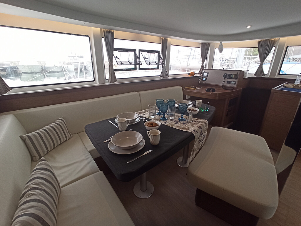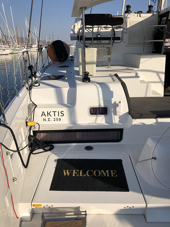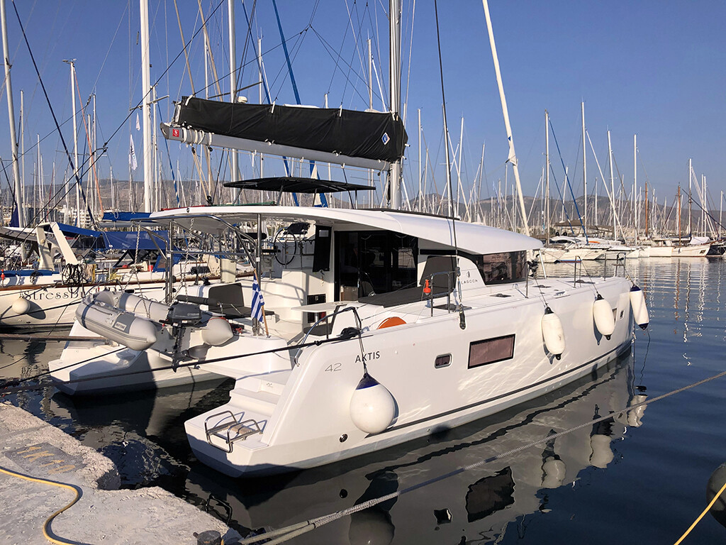 Katamaran Lagoon 42 Aktis, Baujahr 2020, liegt im Athens, Alimos marina, Peloponnes, Griechenland vor Anker. Es verfügt über 4 + 2 Kabinen und bietet Platz für 8 + 2 + 2 Personen mit 4 + 1 Toiletten. Bettwäsche und Küchenausstattung sind im Preis inbegriffen.