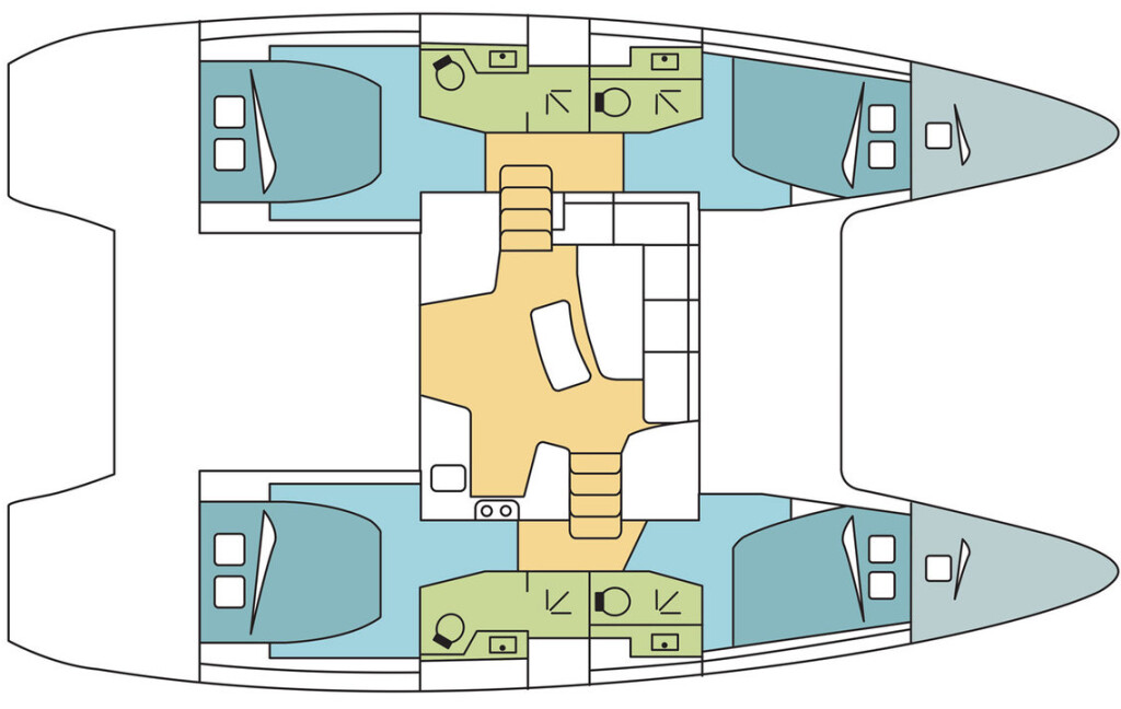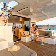 Katamaran Lagoon 42 ALBERTA, Baujahr 2020, liegt im Lefkas, D-Marin, Ionisches Meer, Griechenland vor Anker. Es verfügt über 4 + 2 Kabinen und bietet Platz für 8 + 2 + 2 Personen mit 4 Toiletten. Bettwäsche und Küchenausstattung sind im Preis inbegriffen.