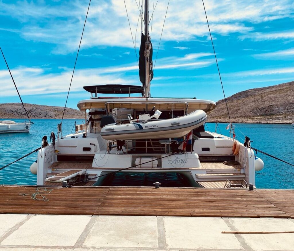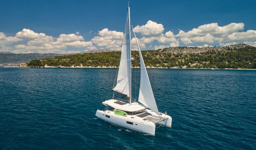 Katamaran Lagoon 42 Aura, Baujahr 2018, liegt im Marina Zenta, Split, Split & Umgebung, Kroatien vor Anker. Es verfügt über 3 + 1 Kabinen und bietet Platz für 6 + 2 Personen mit 3 Toiletten. Bettwäsche und Küchenausstattung sind im Preis inbegriffen.