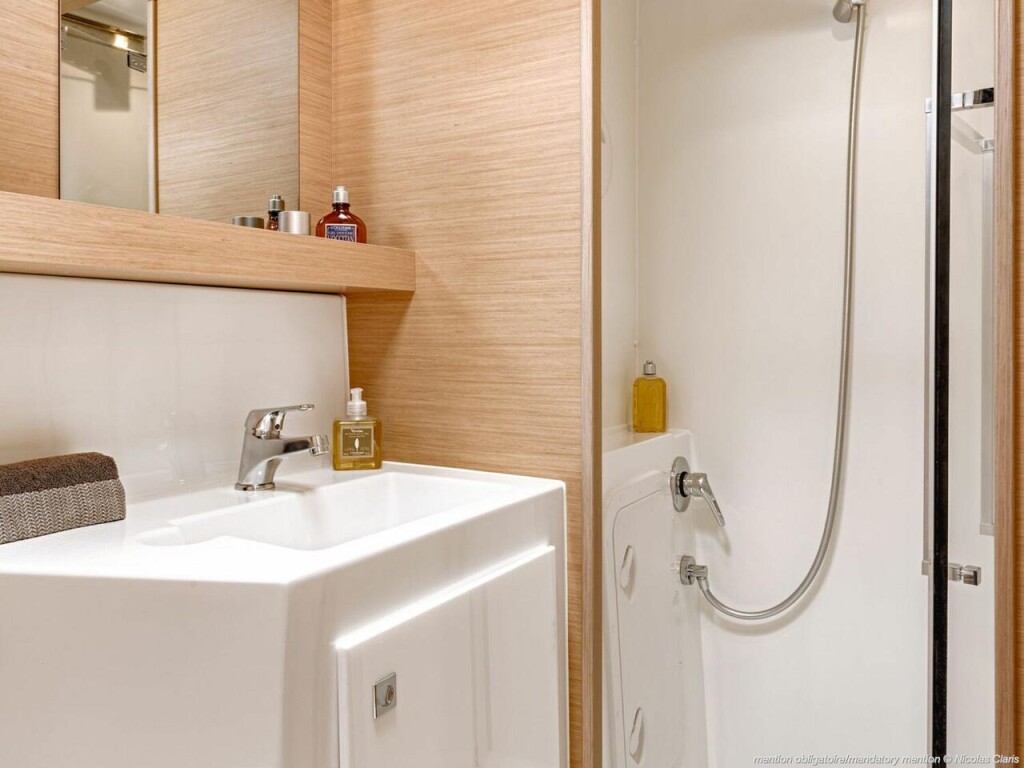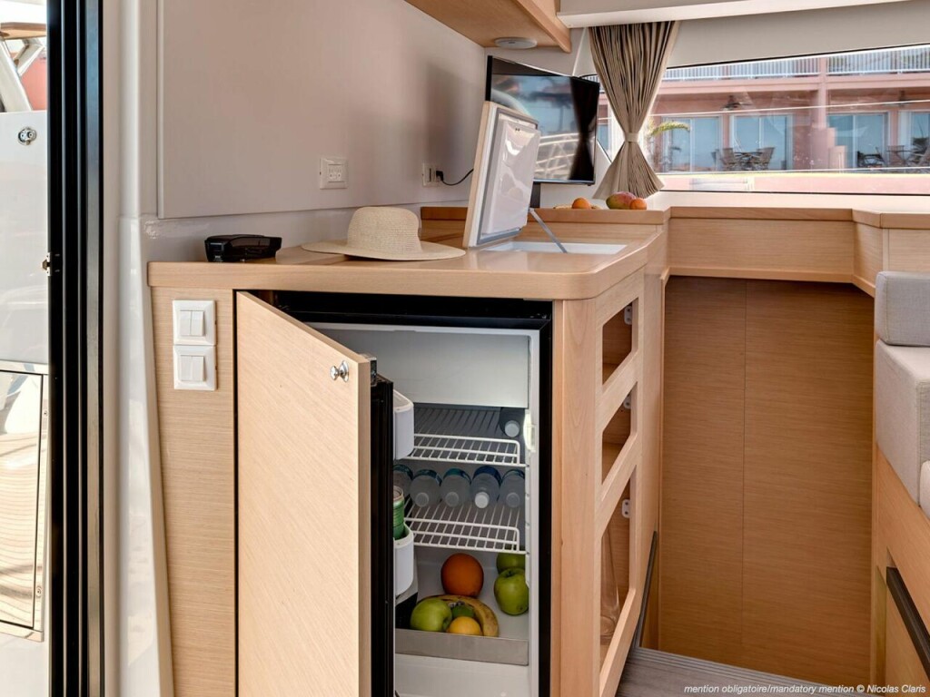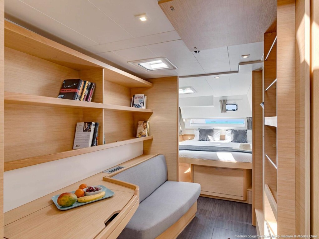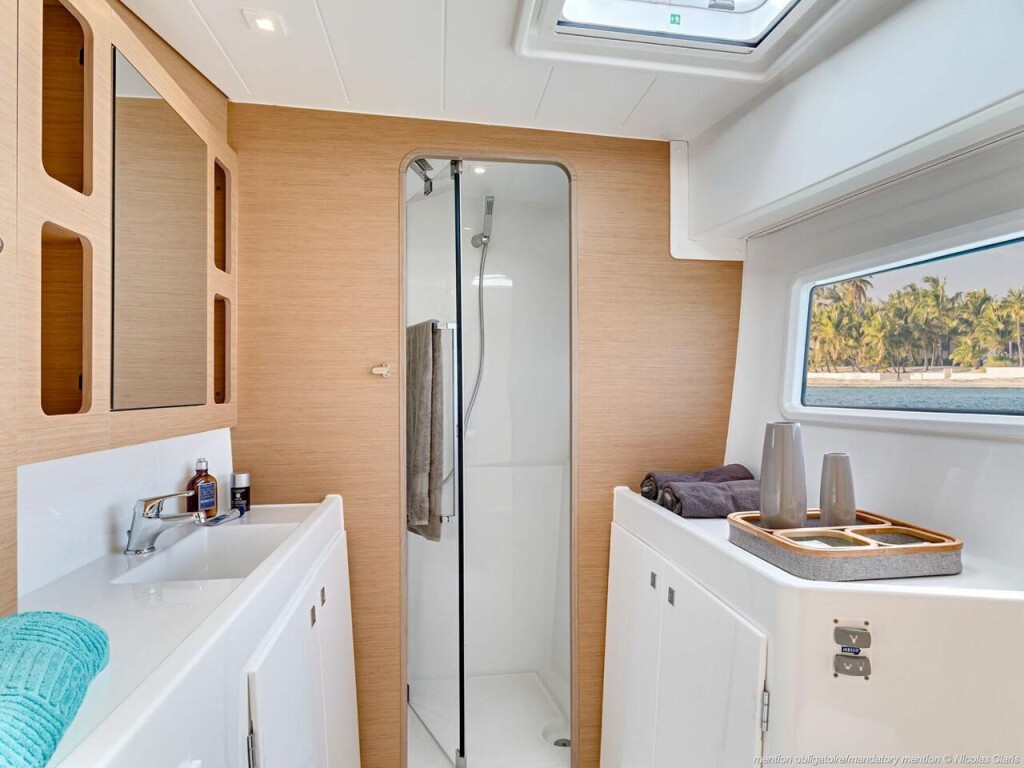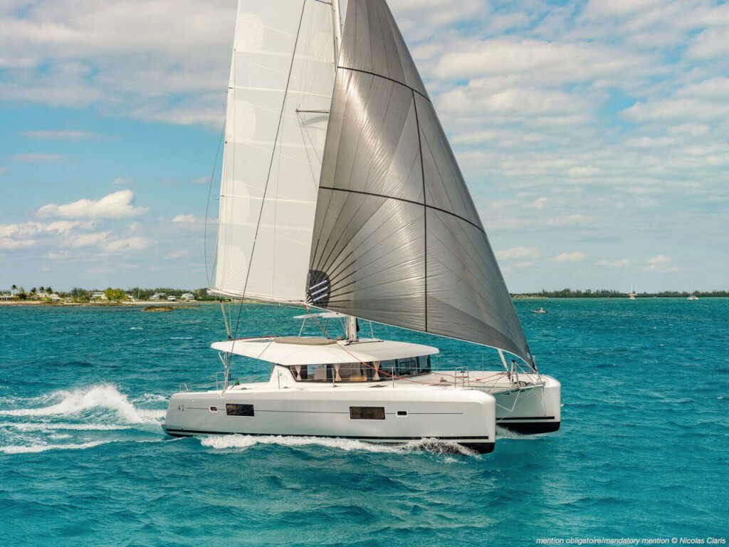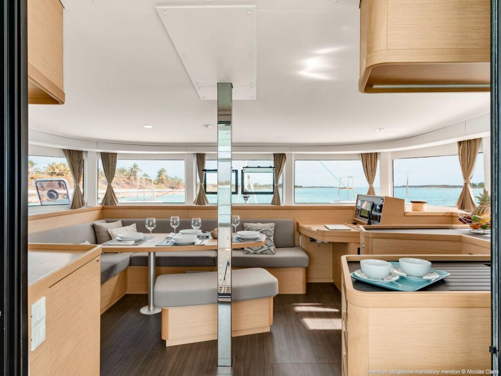 Katamaran Lagoon 42 Dream of Liberty, Baujahr 2023, liegt im Marina Kornati, Biograd, Zadar & Umgebung, Kroatien vor Anker. Es verfügt über 3 + 1 Kabinen und bietet Platz für 6 + 2 + 1 Personen mit 3 Toiletten. Bettwäsche und Küchenausstattung sind im Preis inbegriffen.