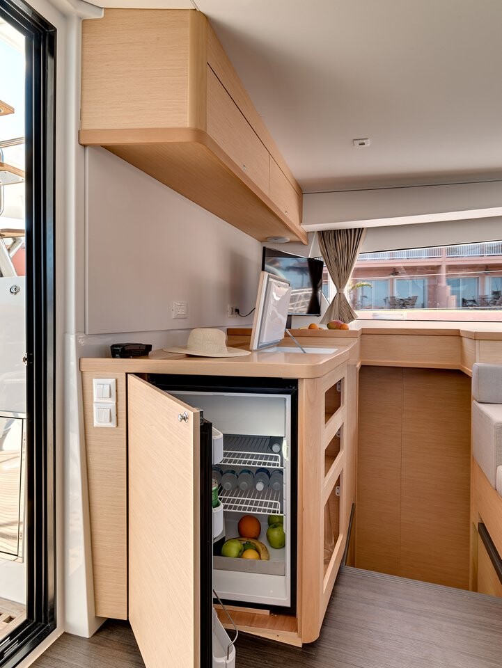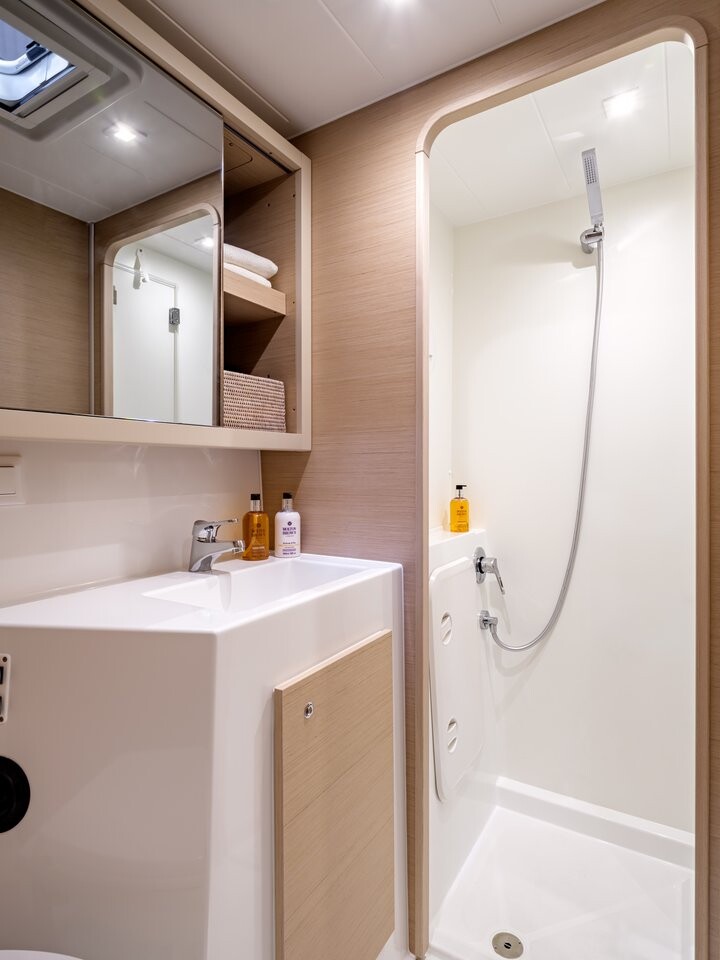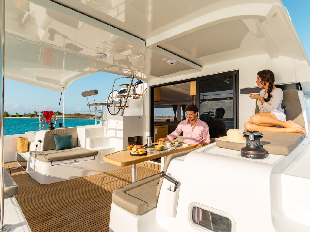 Katamaran Lagoon 42 Golden Bride, Baujahr 2024, liegt im Seychelles, Eden Island Marina, Mahé, Seychellen vor Anker. Es verfügt über 4 + 1 Kabinen und bietet Platz für 8 + 2 + 1 Personen mit 4 Toiletten. Bettwäsche und Küchenausstattung sind im Preis inbegriffen.