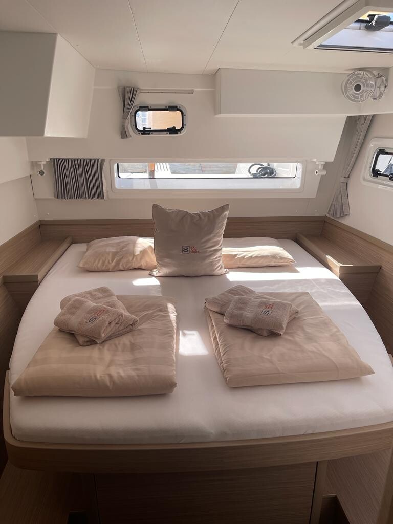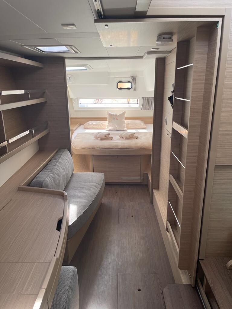Katamaran Lagoon 42 Millenium Slowdown, Baujahr 2026, liegt im Marina Frapa, Rogoznica, Sibenik & Umgebung, Kroatien vor Anker. Es verfügt über 3 Kabinen und bietet Platz für 6 + 2 Personen mit 3 Toiletten. Bettwäsche und Küchenausstattung sind im Preis inbegriffen.