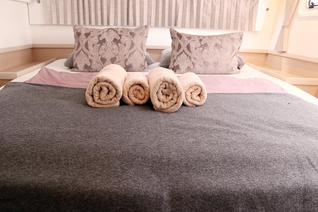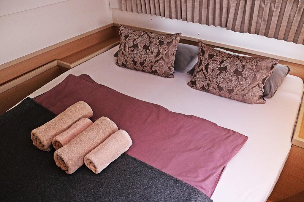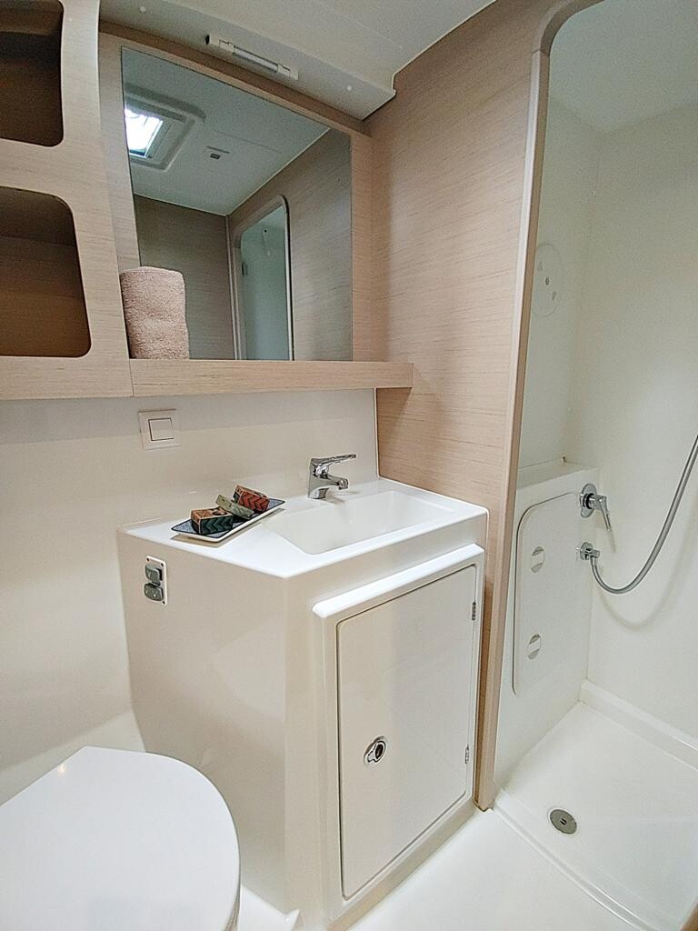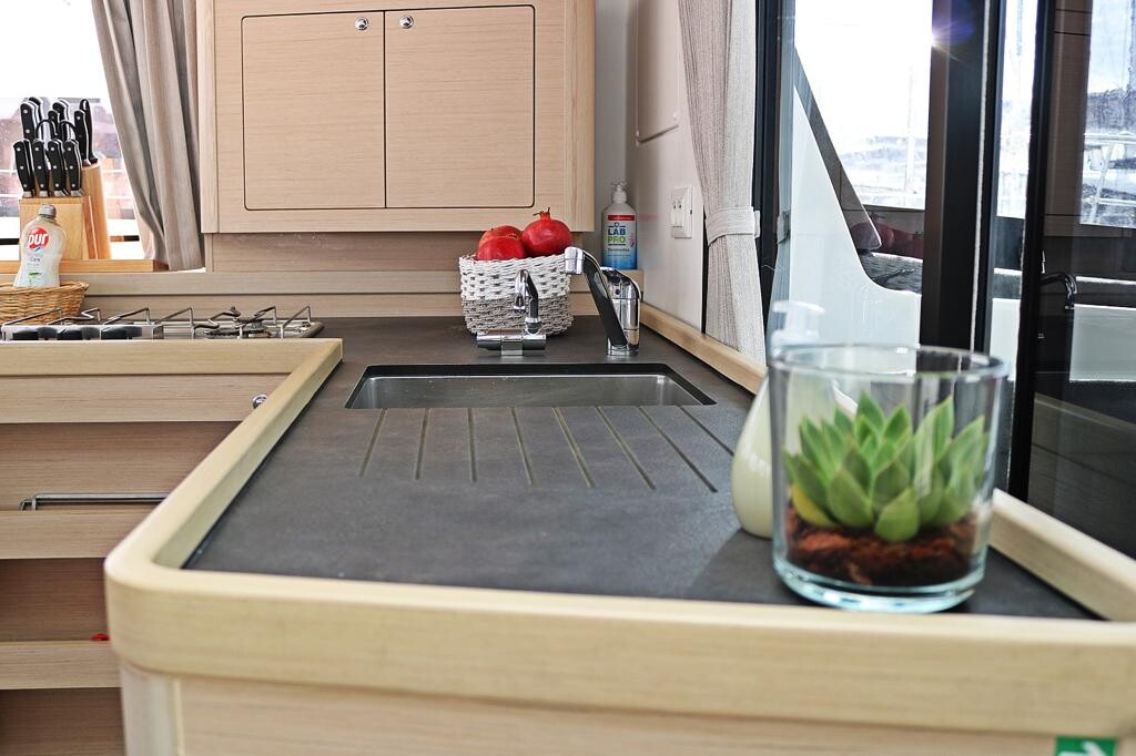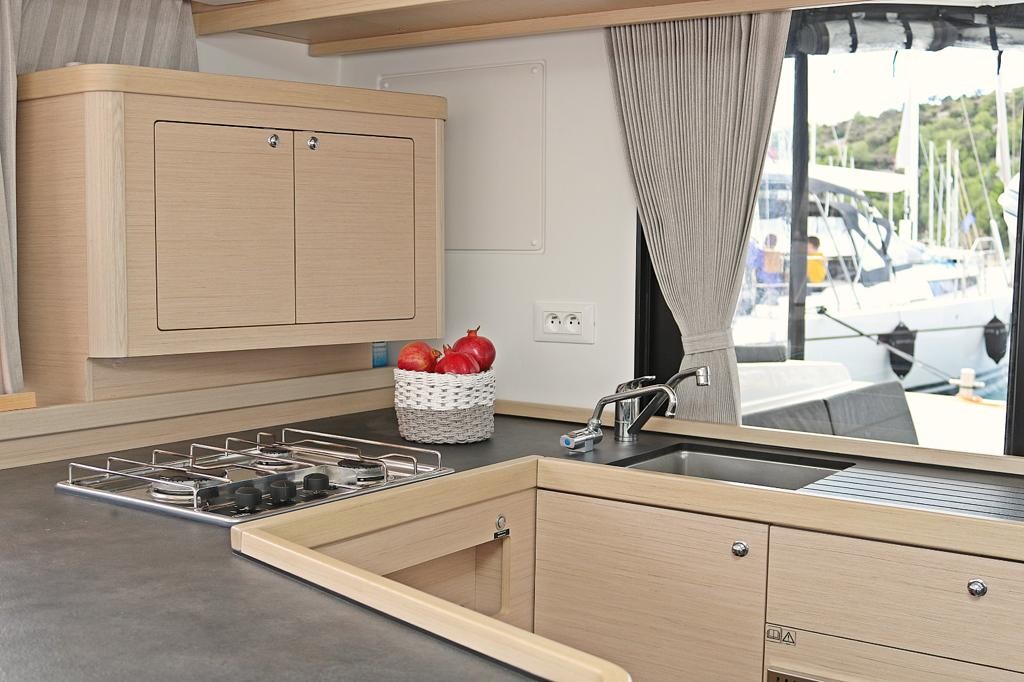 Katamaran Lagoon 42 Ocean Pearl, Baujahr 2021, liegt im Marina Frapa, Rogoznica, Sibenik & Umgebung, Kroatien vor Anker. Es verfügt über 3 + 1 Kabinen und bietet Platz für 6 + 1 + 1 Personen mit 3 Toiletten. Bettwäsche und Küchenausstattung sind im Preis inbegriffen.