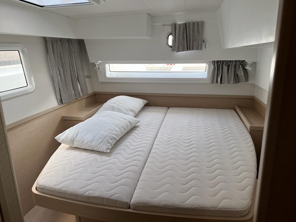 Katamaran Lagoon 42 Sissi, Baujahr 2023, liegt im Capo D'orlando Marina, Sizilien, Italien vor Anker. Es verfügt über 4 + 2 Kabinen und bietet Platz für 8 + 2 + 2 Personen mit 4 Toiletten. Bettwäsche und Küchenausstattung sind im Preis inbegriffen.