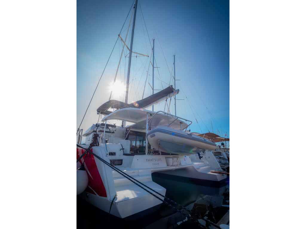 Katamaran Lagoon 42 That's Life, Baujahr 2019, liegt im Marina Kornati, Biograd, Zadar & Umgebung, Kroatien vor Anker. Es verfügt über 4 + 2 Kabinen und bietet Platz für 8 + 2 + 2 Personen mit 4 Toiletten. Bettwäsche und Küchenausstattung sind im Preis inbegriffen.
