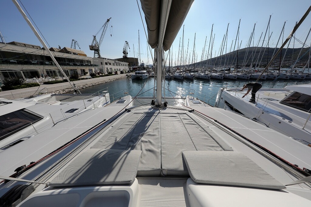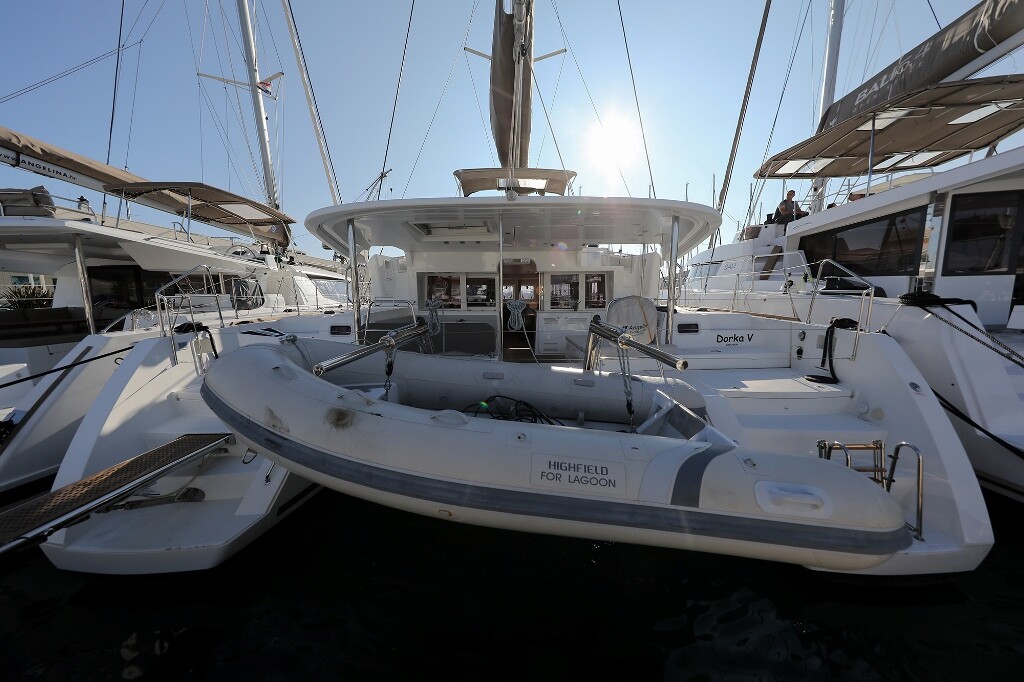 Katamaran Lagoon 450 Dorka V, Baujahr 2014, liegt im Tribunj D-Marin, Sibenik & Umgebung, Kroatien vor Anker. Es verfügt über 4 + 2 Kabinen und bietet Platz für 8 + 2 + 2 Personen mit 4 Toiletten. Bettwäsche und Küchenausstattung sind im Preis inbegriffen.