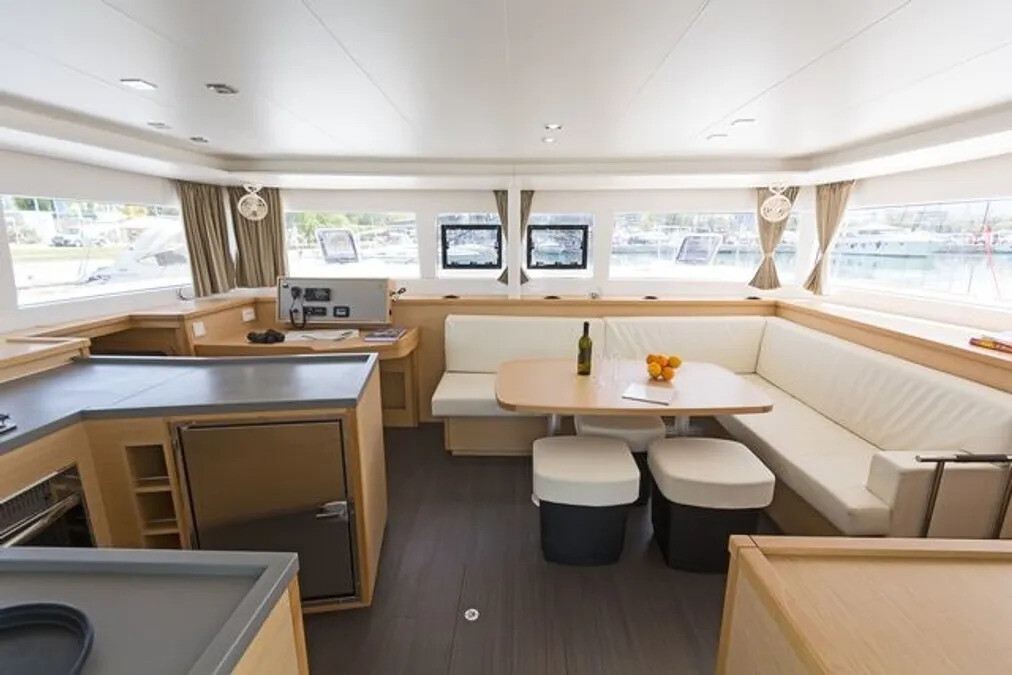 Katamaran Lagoon 450 F Anna Tessa, Baujahr 2019, liegt im Lefkas, Perigiali, Ionisches Meer, Griechenland vor Anker. Es verfügt über 4 + 2 Kabinen und bietet Platz für 8 + 2 + 2 Personen mit 4 + 1 Toiletten. Bettwäsche und Küchenausstattung sind im Preis inbegriffen.