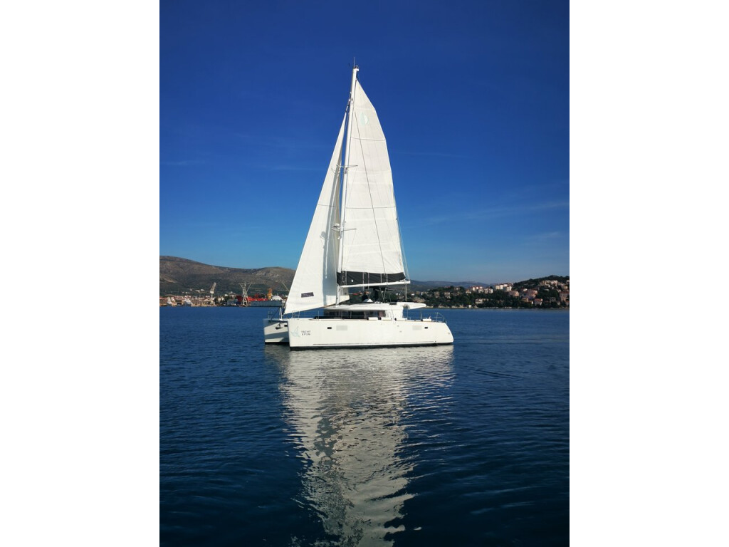 Katamaran Lagoon 450 F Miriam, Baujahr 2019, liegt im Marina Kremik, Primosten, Sibenik & Umgebung, Kroatien vor Anker. Es verfügt über 4 + 2 Kabinen und bietet Platz für 8 + 2 + 2 Personen mit 4 Toiletten. Bettwäsche und Küchenausstattung sind im Preis inbegriffen.