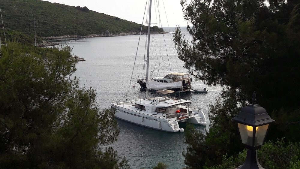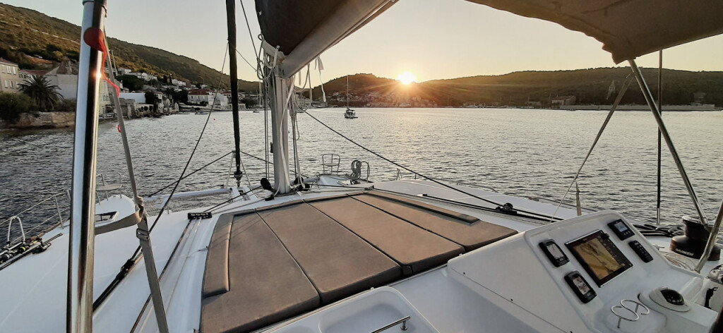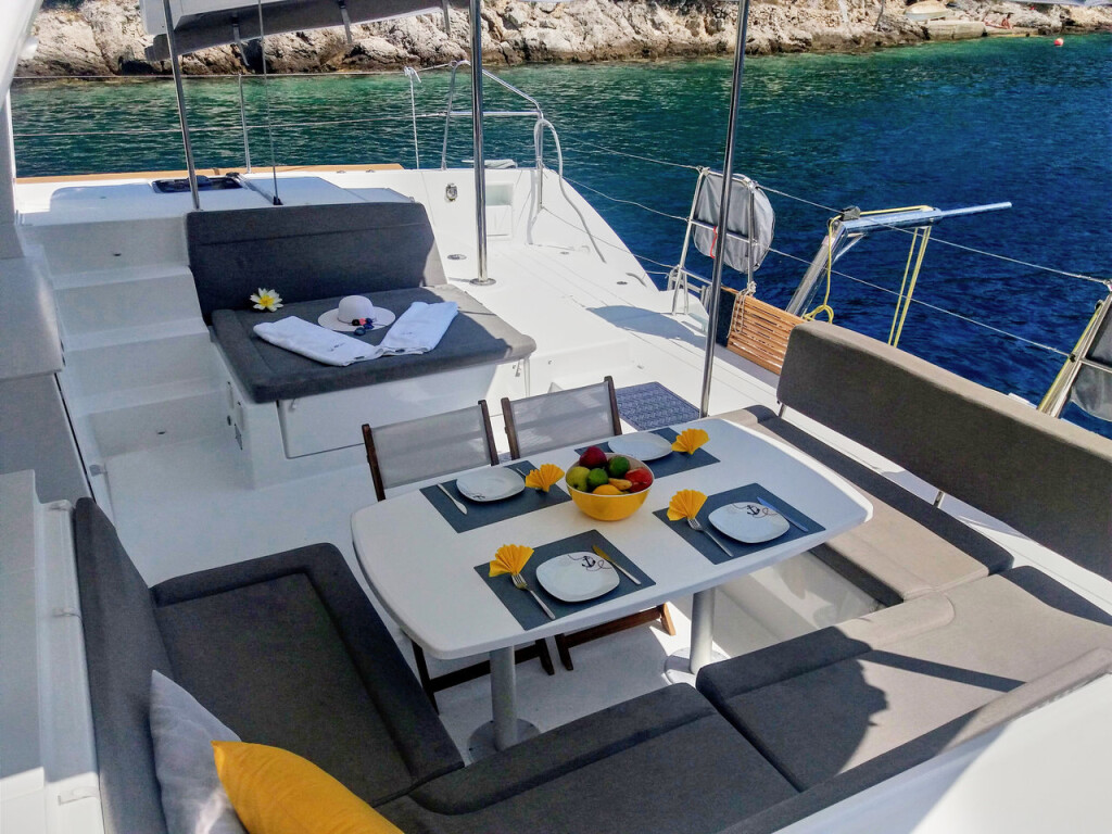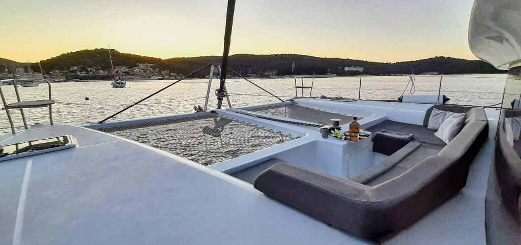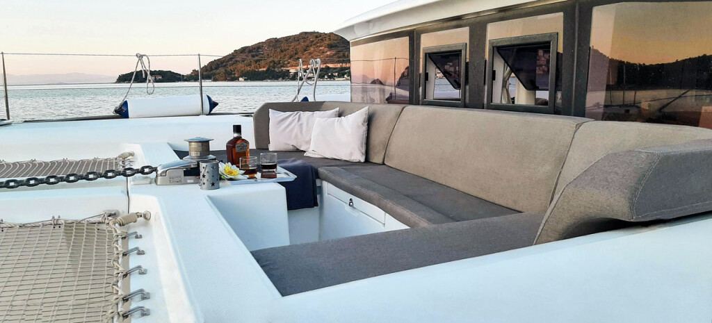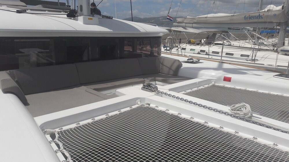Katamaran Lagoon 450 F Red Twin, Baujahr 2016, liegt im Marina Kremik, Primosten, Sibenik & Umgebung, Kroatien vor Anker. Es verfügt über 4 + 2 Kabinen und bietet Platz für 8 + 2 + 2 Personen mit 4 Toiletten. Bettwäsche und Küchenausstattung sind im Preis inbegriffen.