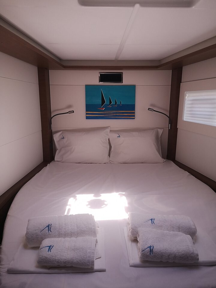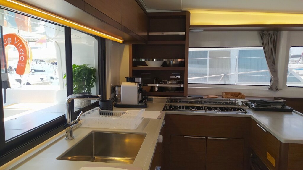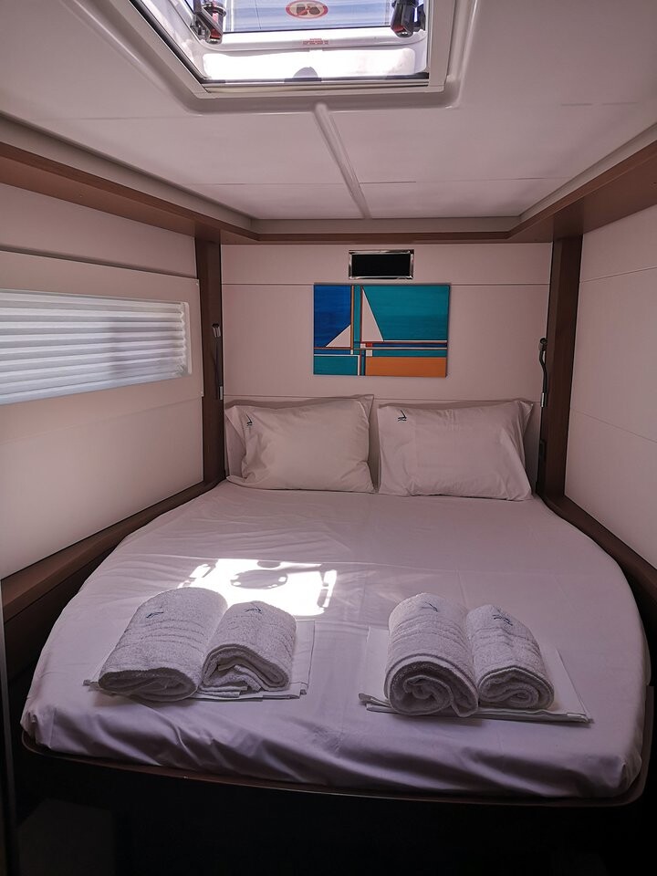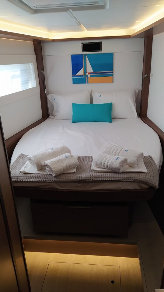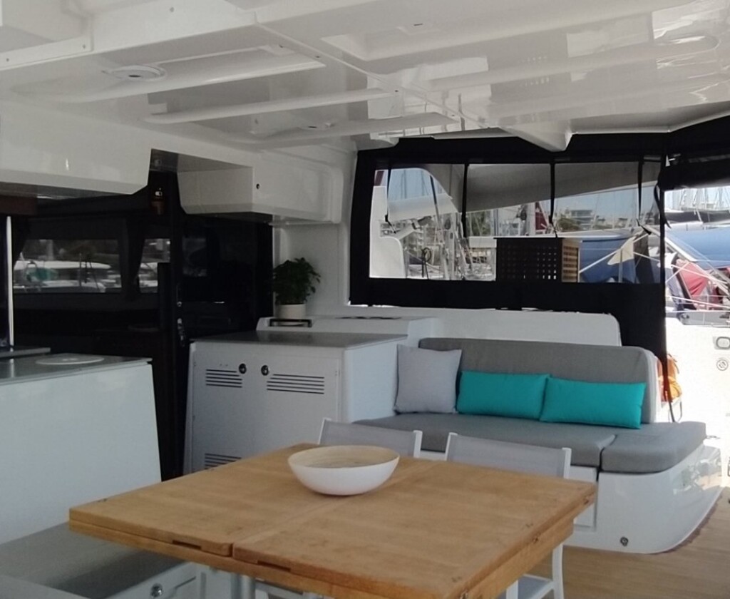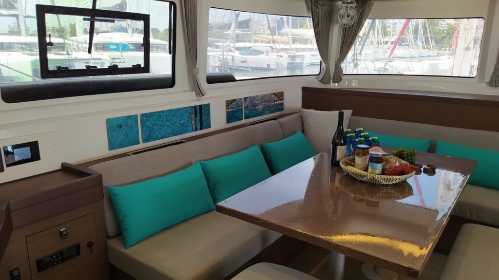 Katamaran Lagoon 46 Aqua Vitae, Baujahr 2022, liegt im Athens, Alimos marina, Peloponnes, Griechenland vor Anker. Es verfügt über 4 + 2 Kabinen und bietet Platz für 9 + 1 Personen mit 4 + 1 Toiletten. Bettwäsche und Küchenausstattung sind im Preis inbegriffen.