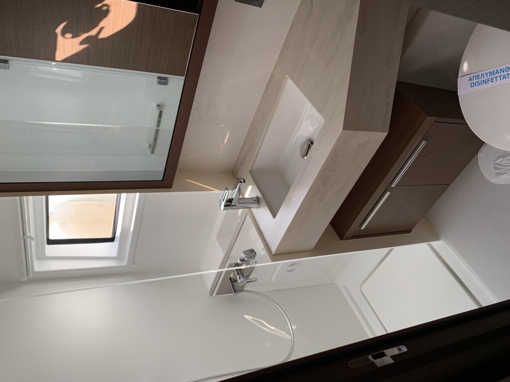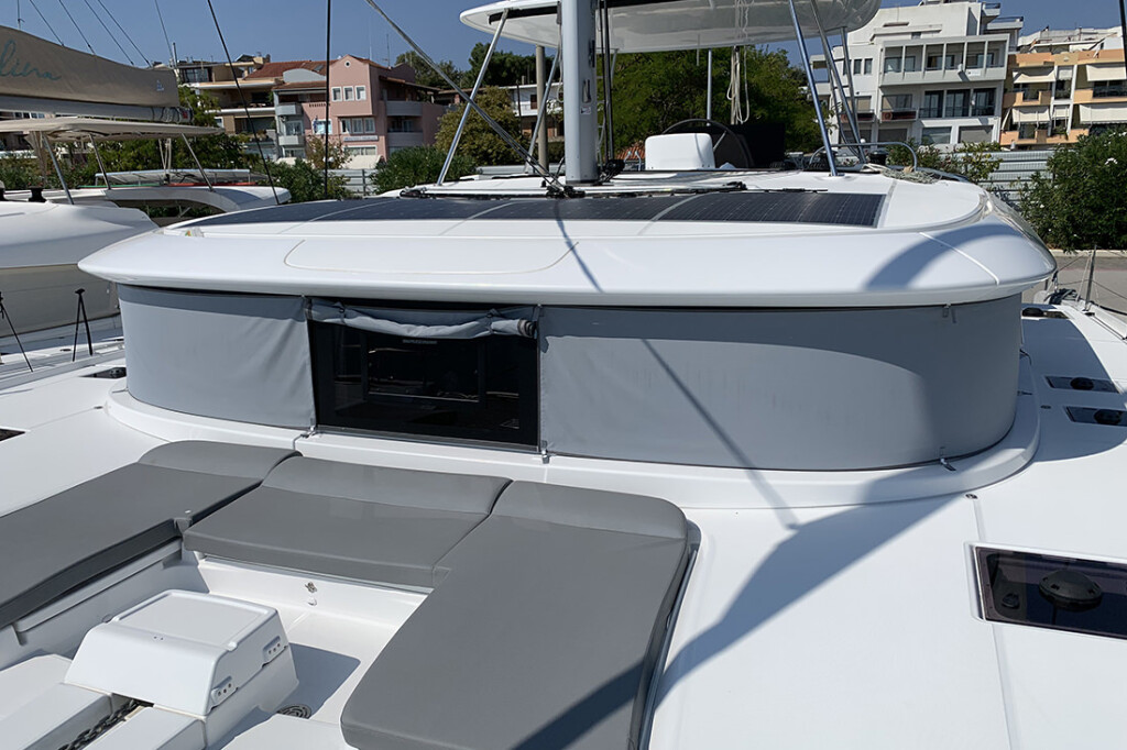 Katamaran Lagoon 46 Aurora, Baujahr 2024, liegt im Preveza, Cleopatra Marina, Ionisches Meer, Griechenland vor Anker. Es verfügt über 4 + 2 Kabinen und bietet Platz für 8 + 2 + 2 Personen mit 4 Toiletten. Bettwäsche und Küchenausstattung sind im Preis inbegriffen.