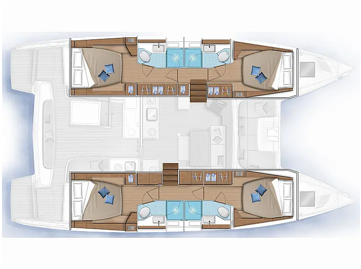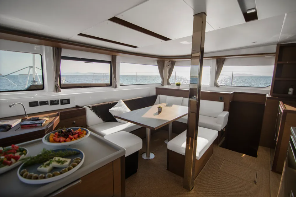 Katamaran Lagoon 46 G. P, Baujahr 2020, liegt im Athens, Alimos marina, Peloponnes, Griechenland vor Anker. Es verfügt über 4 + 2 Kabinen und bietet Platz für 8 + 2 Personen mit 4 + 1 Toiletten. Bettwäsche und Küchenausstattung sind im Preis inbegriffen.