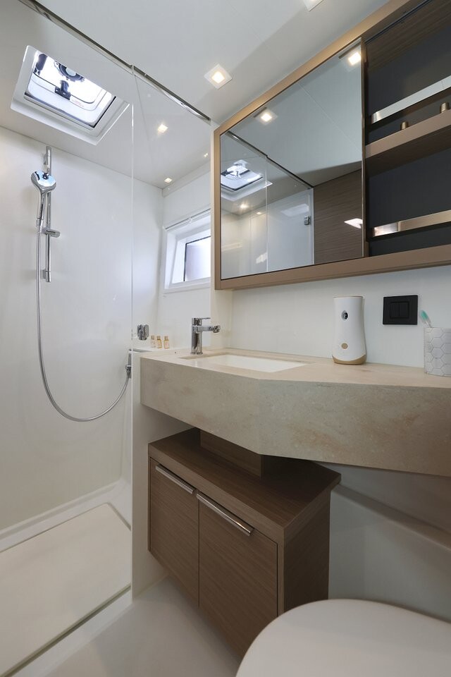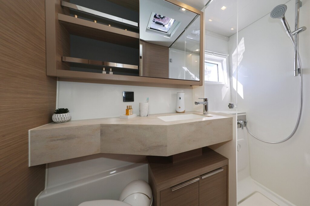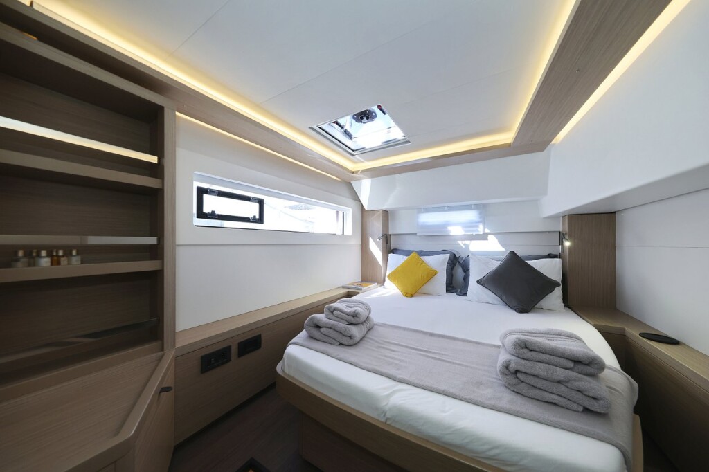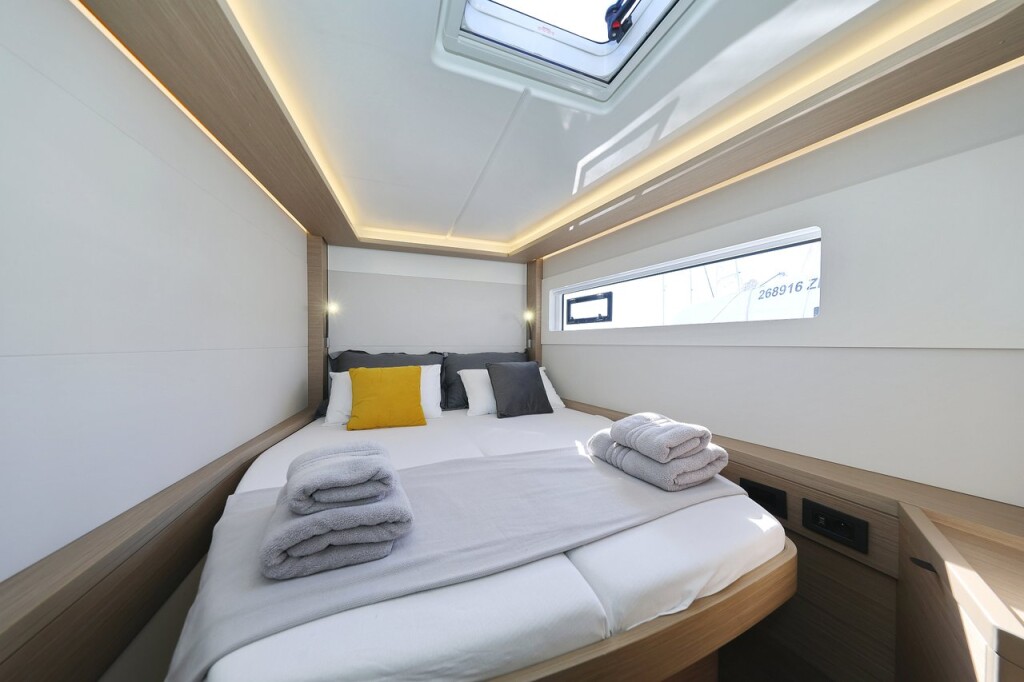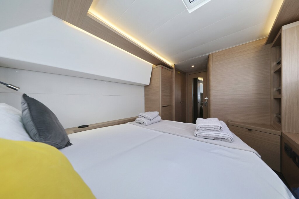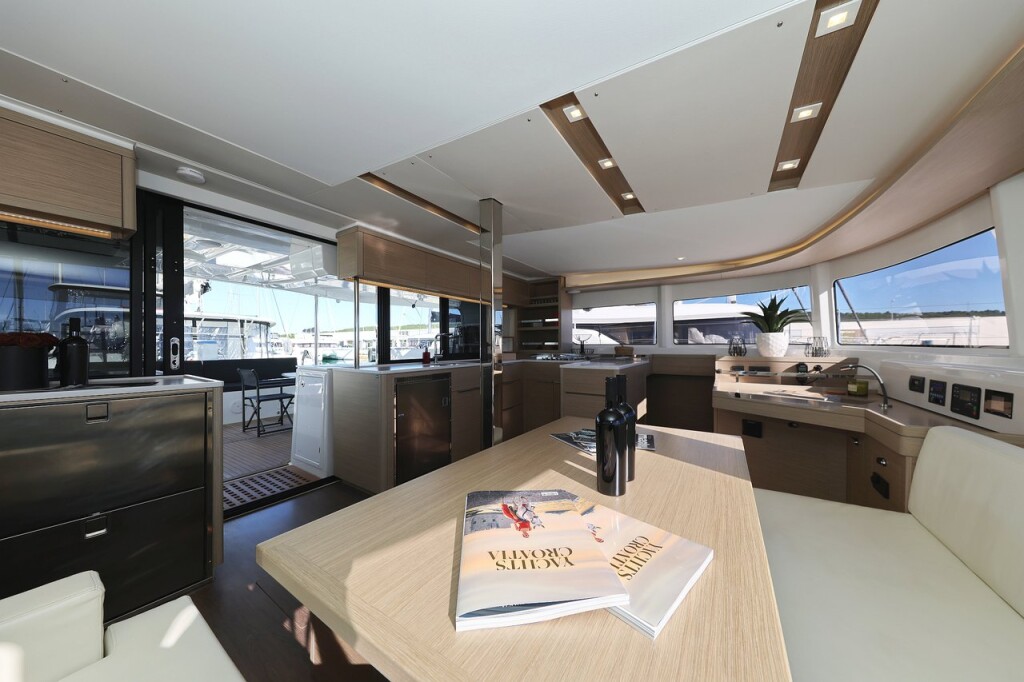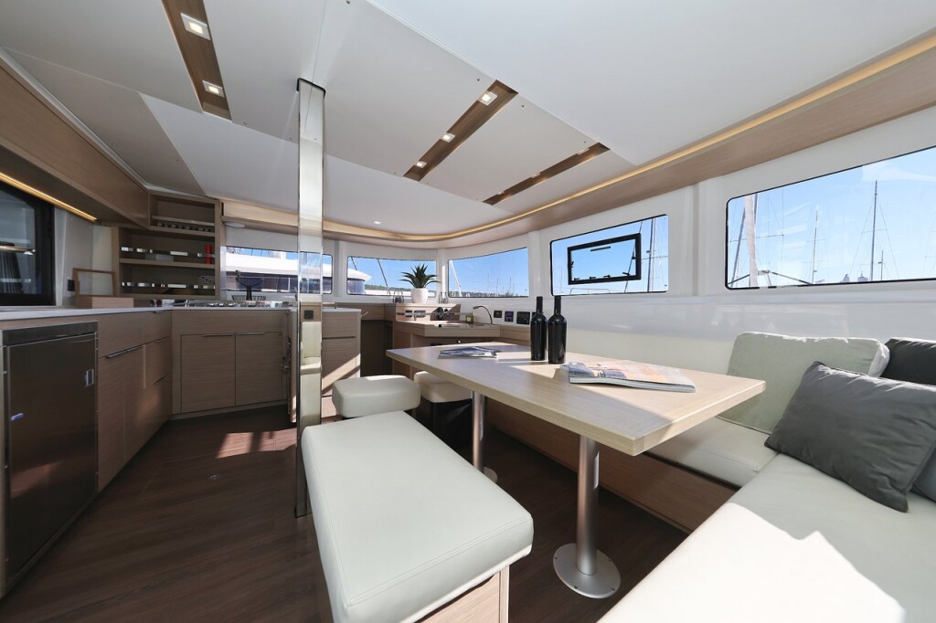 Katamaran Lagoon 46 Guilty Pleasure, Baujahr 2024, liegt im Sukosan, D-Marin Dalmacija Marina, Zadar & Umgebung, Kroatien vor Anker. Es verfügt über 4 + 2 Kabinen und bietet Platz für 8 + 2 + 2 Personen mit 4 Toiletten. Bettwäsche und Küchenausstattung sind im Preis inbegriffen.