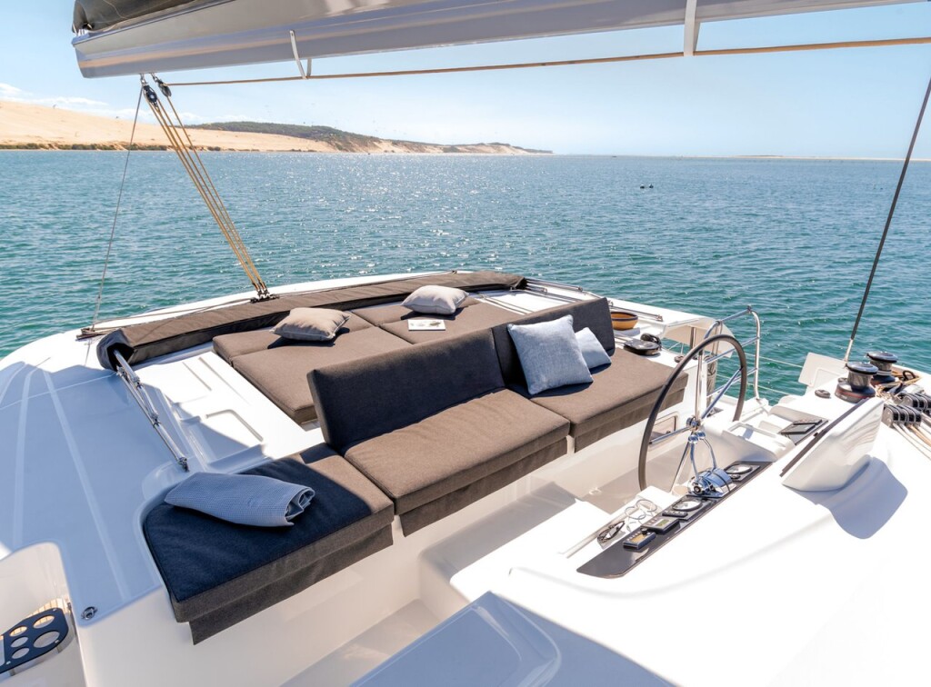 Katamaran Lagoon 46 Mondango, Baujahr 2020, liegt im Palma de Mallorca, Port Andratx, Balearische Inseln, Spanien vor Anker. Es verfügt über 4 + 1 Kabinen und bietet Platz für 8 + 1 Personen mit 4 Toiletten. Bettwäsche und Küchenausstattung sind im Preis inbegriffen.