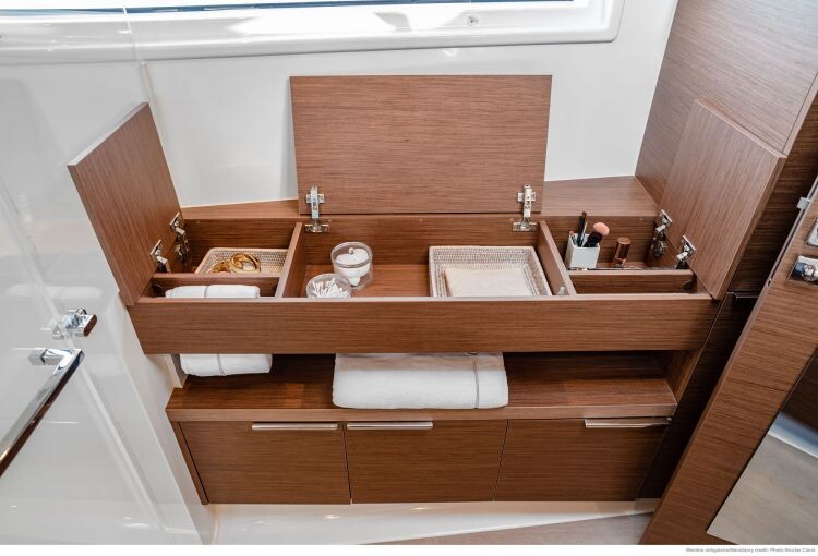 Katamaran Lagoon 46 OLEANDER, Baujahr 2024, liegt im Guadeloupe, La Marina Bas du Fort, Guadeloupe, Karibik vor Anker. Es verfügt über 4 + 2 Kabinen und bietet Platz für 8 + 2 Personen mit 4 Toiletten. Bettwäsche und Küchenausstattung sind im Preis inbegriffen.
