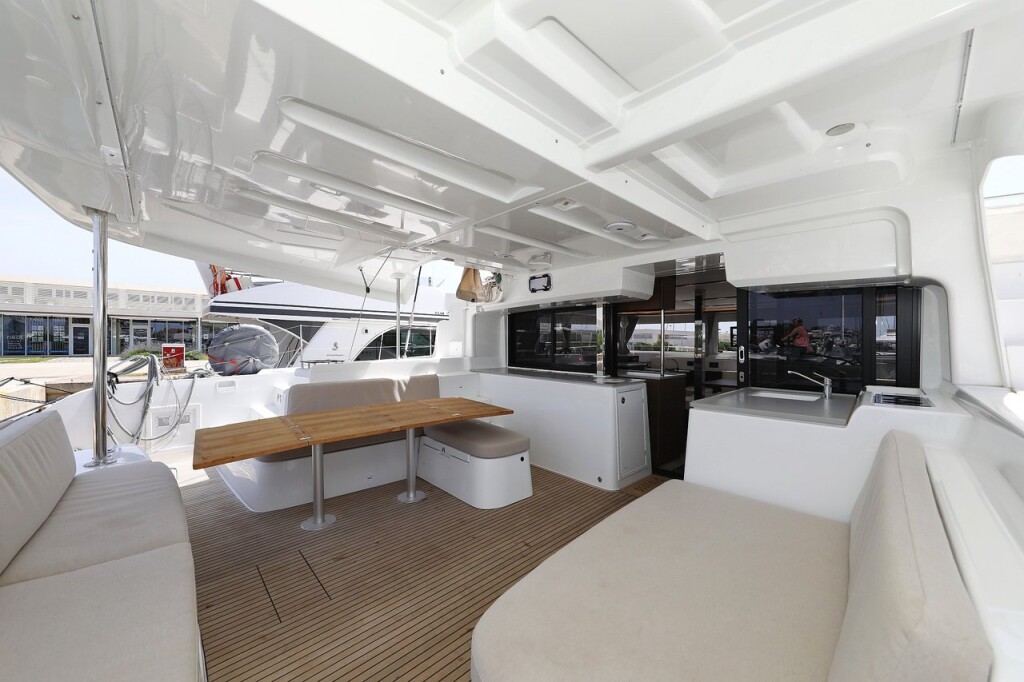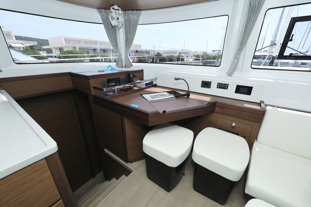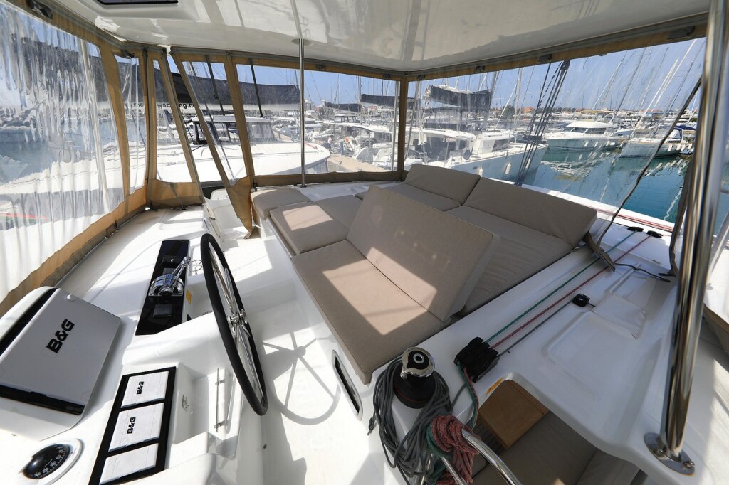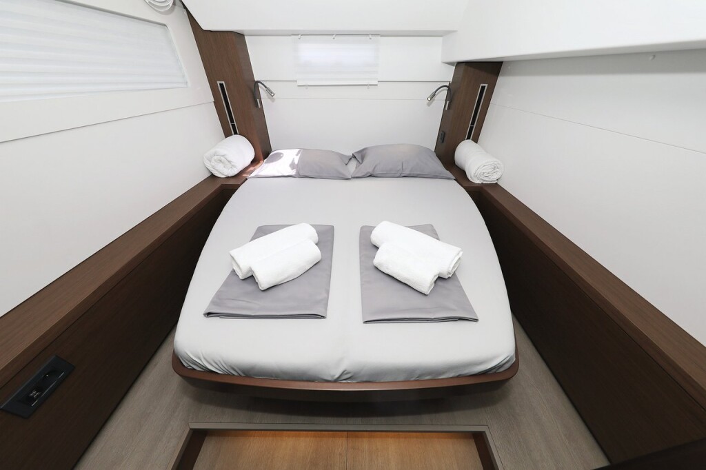 Katamaran Lagoon 46 Panos, Baujahr 2022, liegt im Sukosan, D-Marin Dalmacija Marina, Zadar & Umgebung, Kroatien vor Anker. Es verfügt über 4 + 2 Kabinen und bietet Platz für 8 + 2 + 2 Personen mit 4 Toiletten. Bettwäsche und Küchenausstattung sind im Preis inbegriffen.