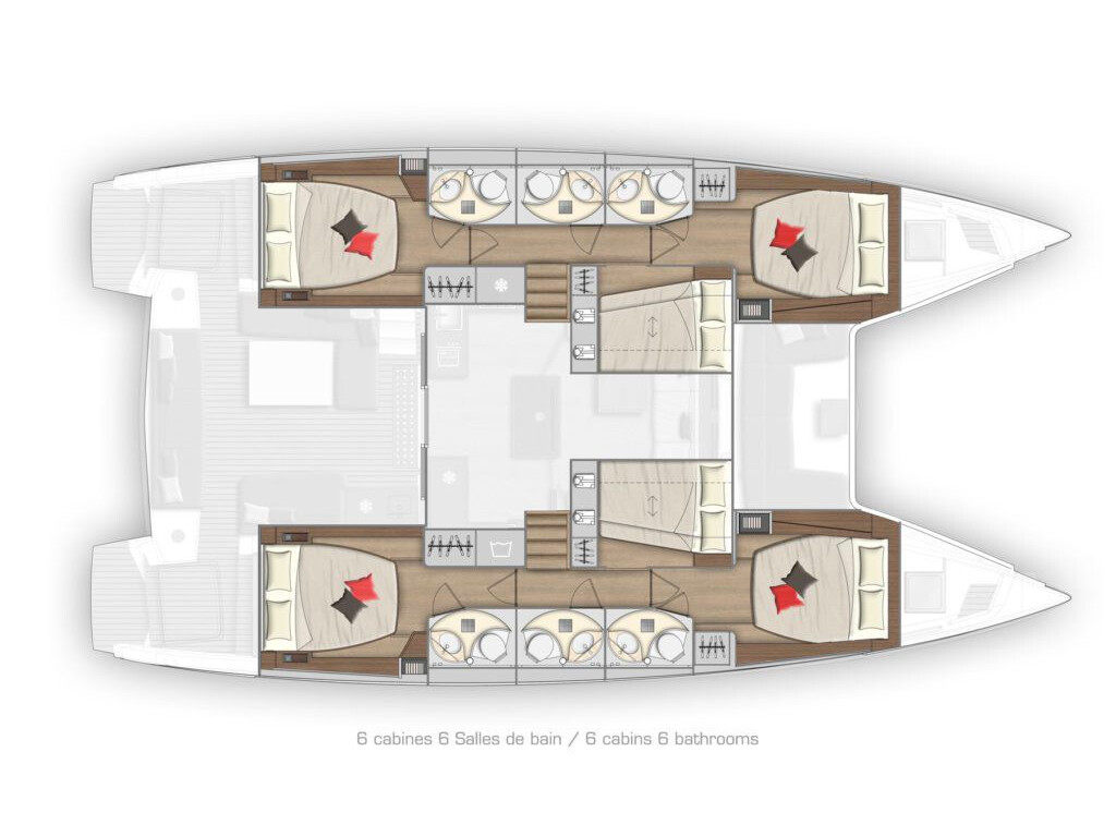 Katamaran Lagoon 50 Echo, Baujahr 2023, liegt im BVI, Tortola, Nanny Cay Marina, British Virgin Islands, Britische Jungferninseln (BVI) vor Anker. Es verfügt über 6 + 1 Kabinen und bietet Platz für 12 + 1 Personen mit 6 + 1 Toiletten. Bettwäsche und Küchenausstattung sind im Preis inbegriffen.