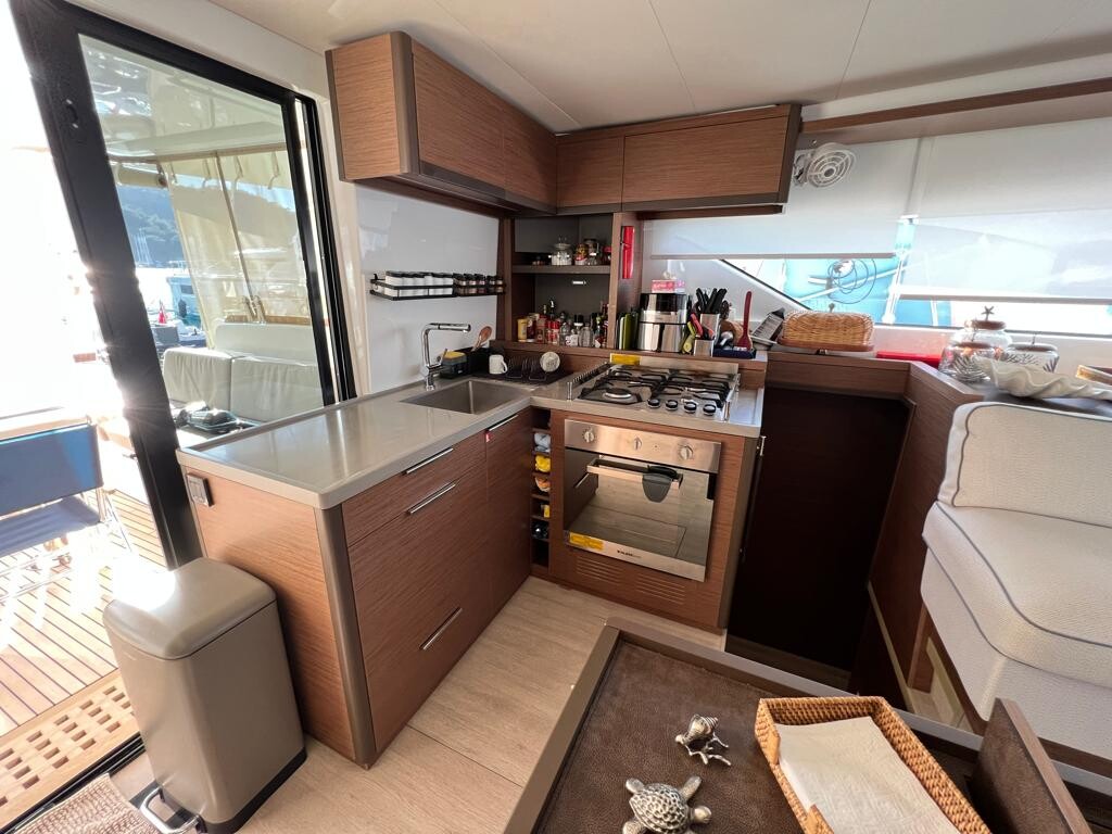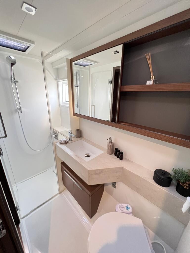 Katamaran Lagoon 50 OW Swice, Baujahr 2022, liegt im Fethiye, Yacht Club Mai, Aegean, Türkei vor Anker. Es verfügt über 4 + 1 Kabinen und bietet Platz für 8 + 1 Personen mit 5 Toiletten. Bettwäsche und Küchenausstattung sind im Preis inbegriffen.
