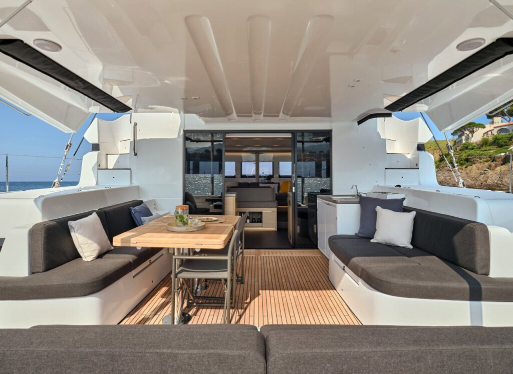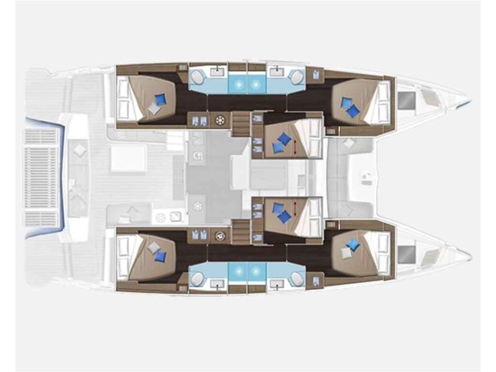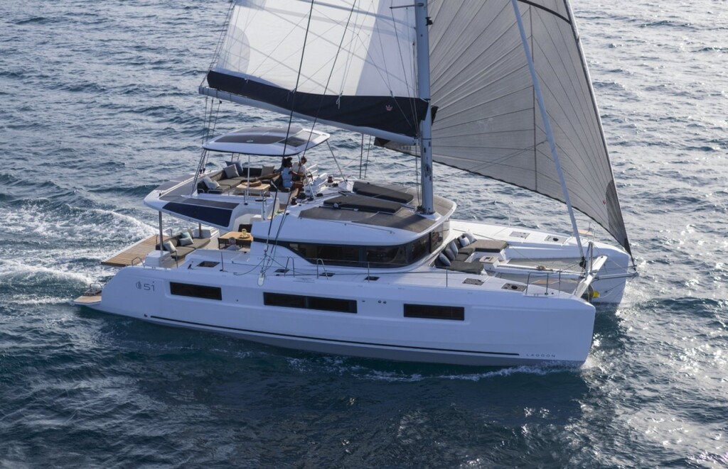 Katamaran Lagoon 51 Pearl, Baujahr 2024, liegt im Athens, Alimos marina, Peloponnes, Griechenland vor Anker. Es verfügt über 6 Kabinen und bietet Platz für 12 + 2 Personen mit 6 Toiletten. Bettwäsche und Küchenausstattung sind im Preis inbegriffen.