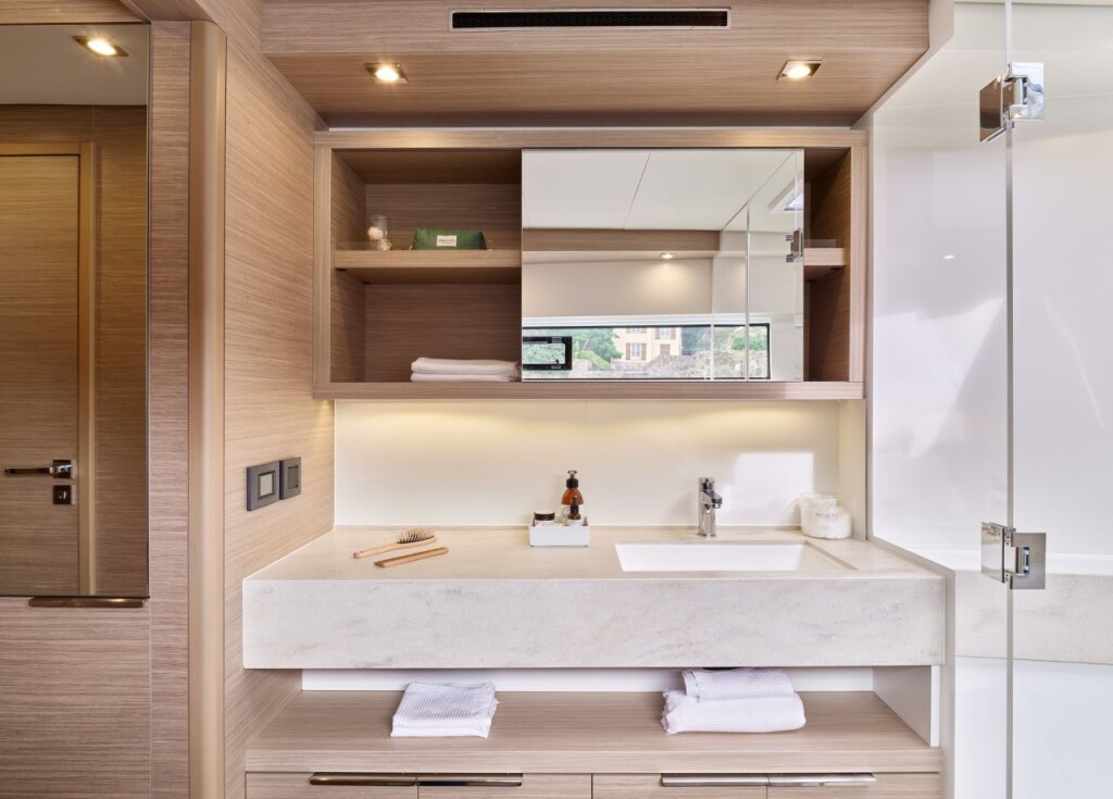 Katamaran Lagoon 51 SEA BEAR, Baujahr 2023, liegt im La Paz, Costa Baja Marina, Baja California Sur, Mexico vor Anker. Es verfügt über 6 + 2 Kabinen und bietet Platz für 12 + 2 Personen mit 4 Toiletten. Bettwäsche und Küchenausstattung sind im Preis inbegriffen.