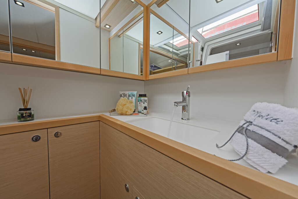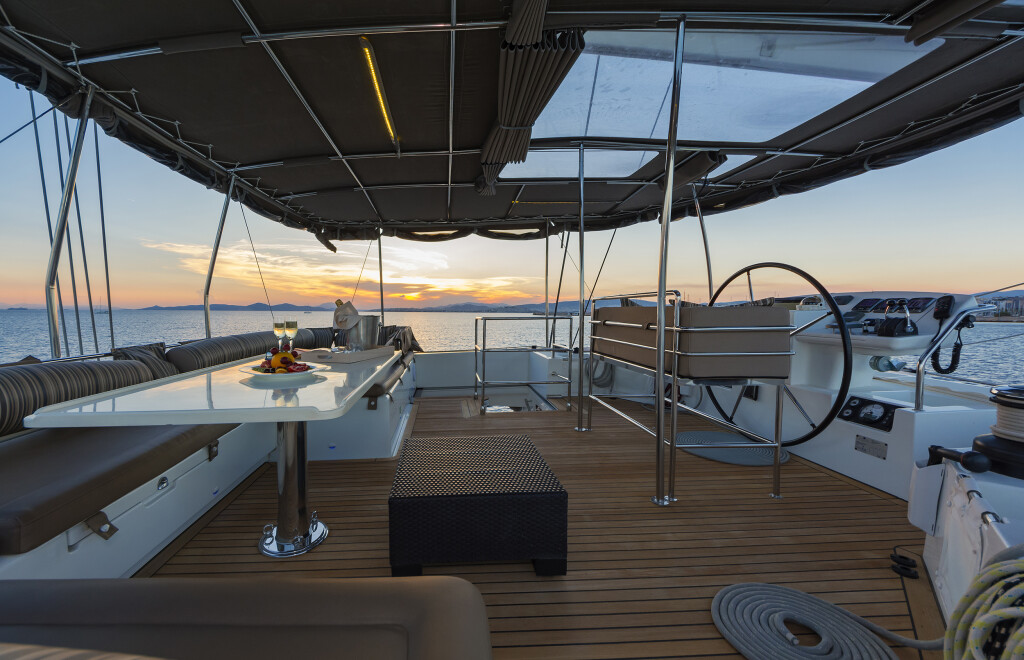 Katamaran Lagoon 560 Meliti, Baujahr 2014, liegt im Athens, Alimos marina, Peloponnes, Griechenland vor Anker. Es verfügt über 4 Kabinen und bietet Platz für 8 + 2 Personen mit 4 Toiletten. Bettwäsche und Küchenausstattung sind im Preis inbegriffen.