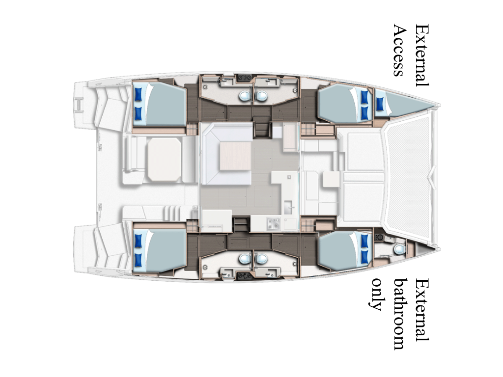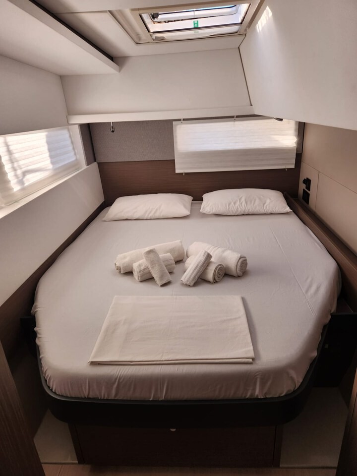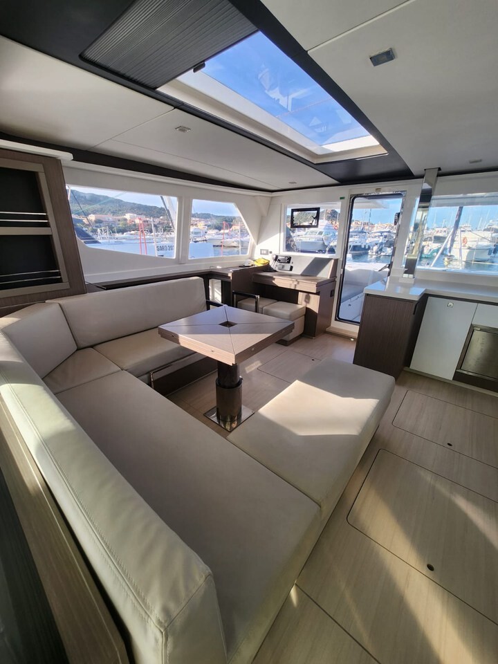 Katamaran Leopard 45 Dou Reve V, Baujahr 2022, liegt im Sardinien, Cannigione, Sardinien, Italien vor Anker. Es verfügt über 4 + 1 Kabinen und bietet Platz für 8 + 2 + 1 Personen mit 4 + 1 Toiletten. Bettwäsche und Küchenausstattung sind im Preis inbegriffen.