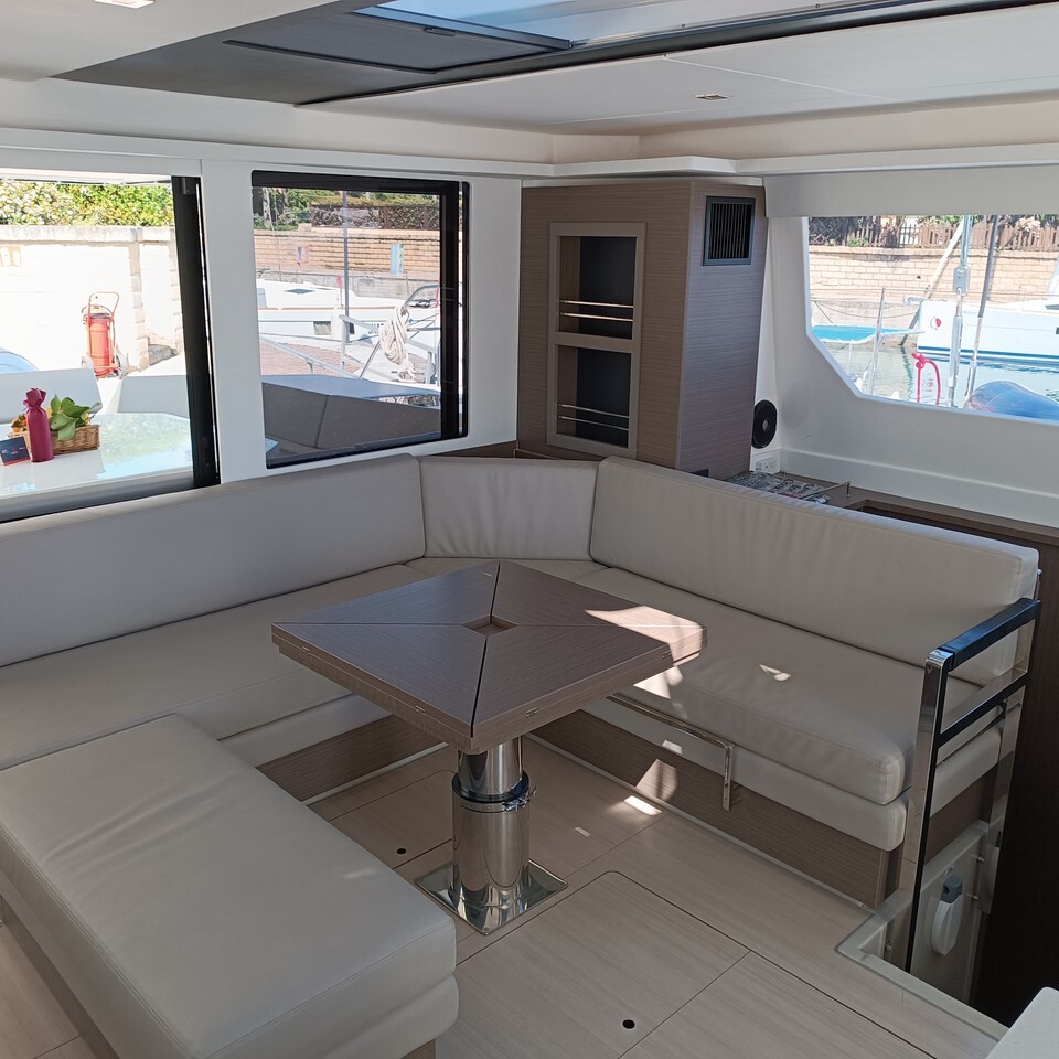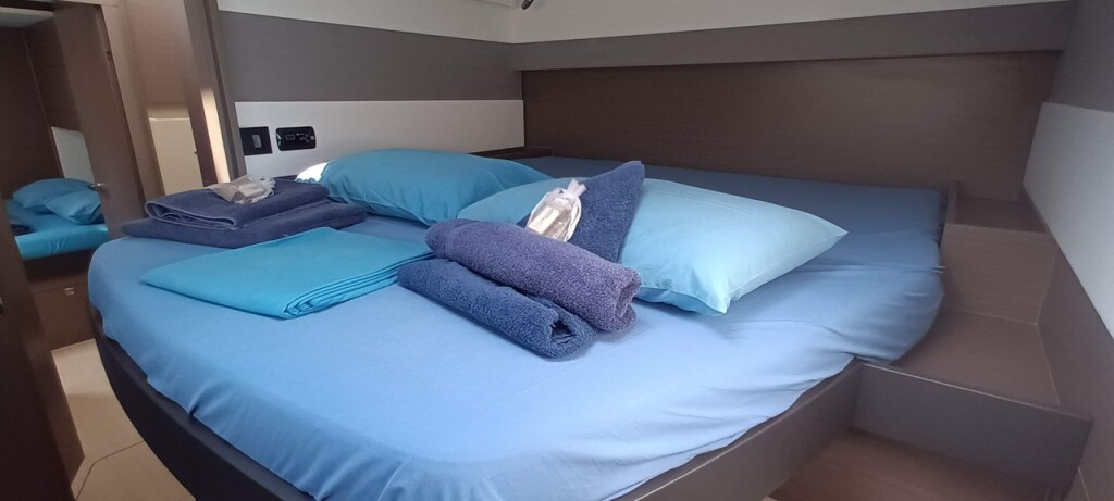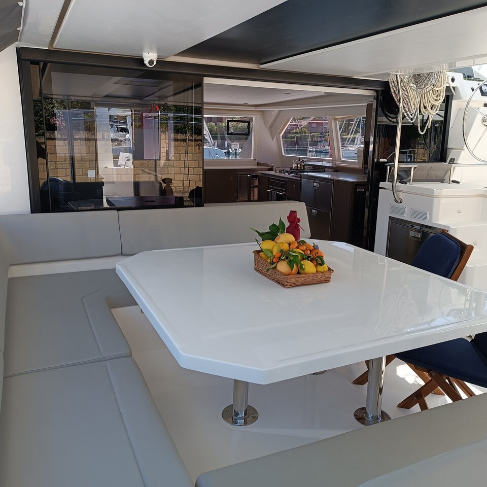 Katamaran Leopard 50 Pannonica, Baujahr 2022, liegt im Sicily, Portorosa, Sizilien, Italien vor Anker. Es verfügt über 5 + 1 Kabinen und bietet Platz für 10 + 2 Personen mit 5 Toiletten. Bettwäsche und Küchenausstattung sind im Preis inbegriffen.