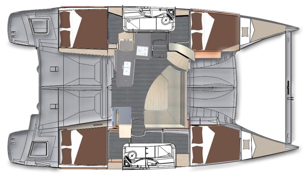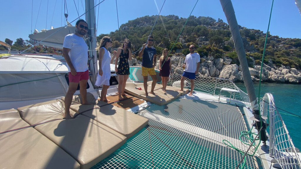 Katamaran Lipari 41 My Way, Baujahr 2013, liegt im Kas Marina, Mediterranean, Türkei vor Anker. Es verfügt über 3 + 1 Kabinen und bietet Platz für 6 + 2 Personen mit 2 Toiletten. Bettwäsche und Küchenausstattung sind im Preis inbegriffen.