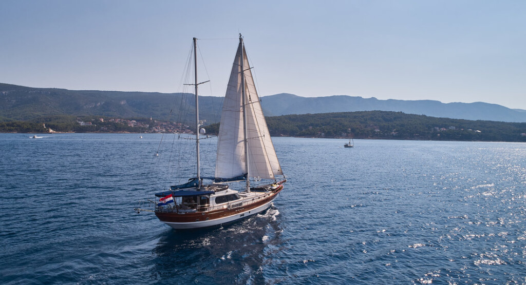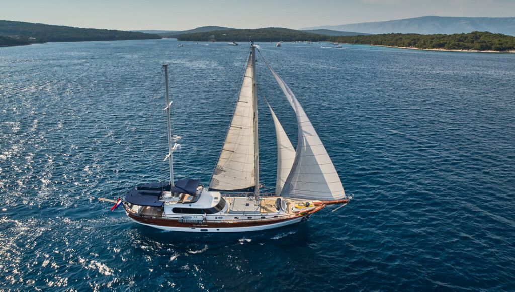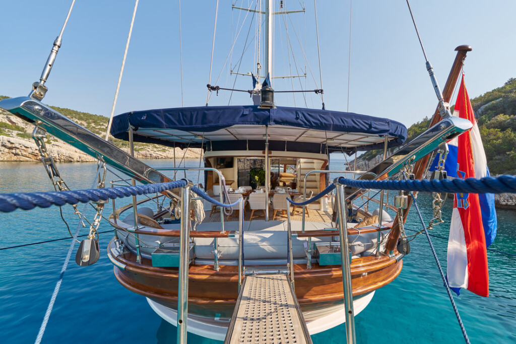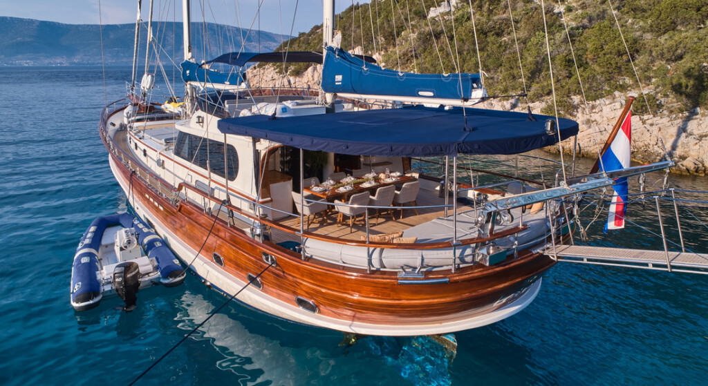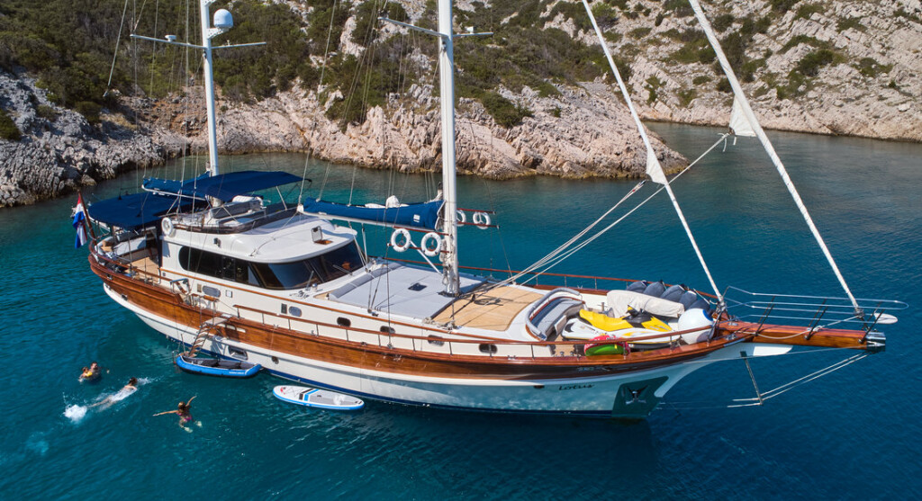 Gulet Lotus Lotus, Baujahr 2006, liegt im Split Harbour, Split & Umgebung, Kroatien vor Anker. Es verfügt über 4 Kabinen und bietet Platz für 8 Personen mit 4 Toiletten. Bettwäsche und Küchenausstattung sind im Preis inbegriffen.