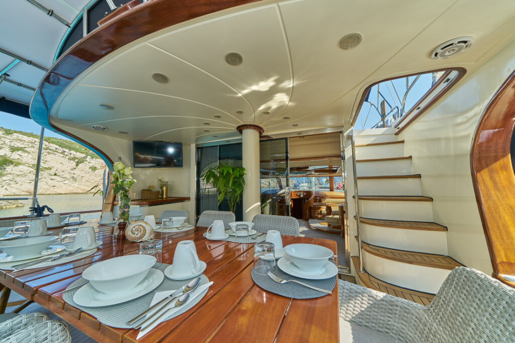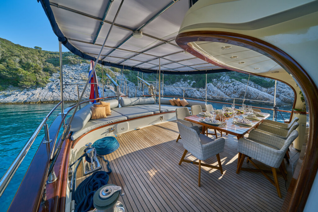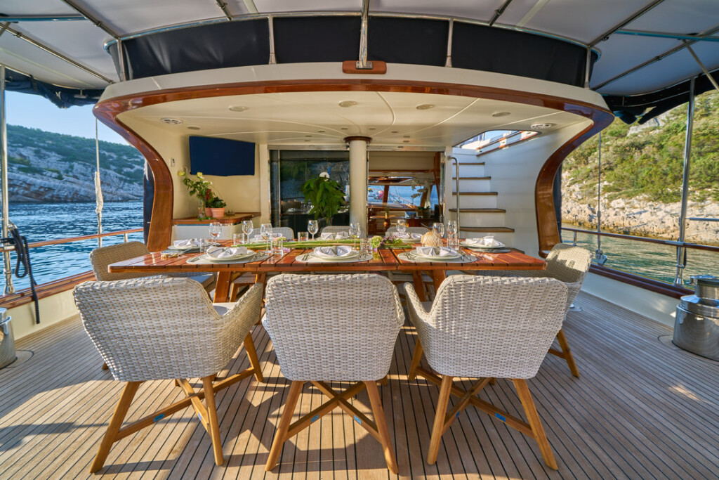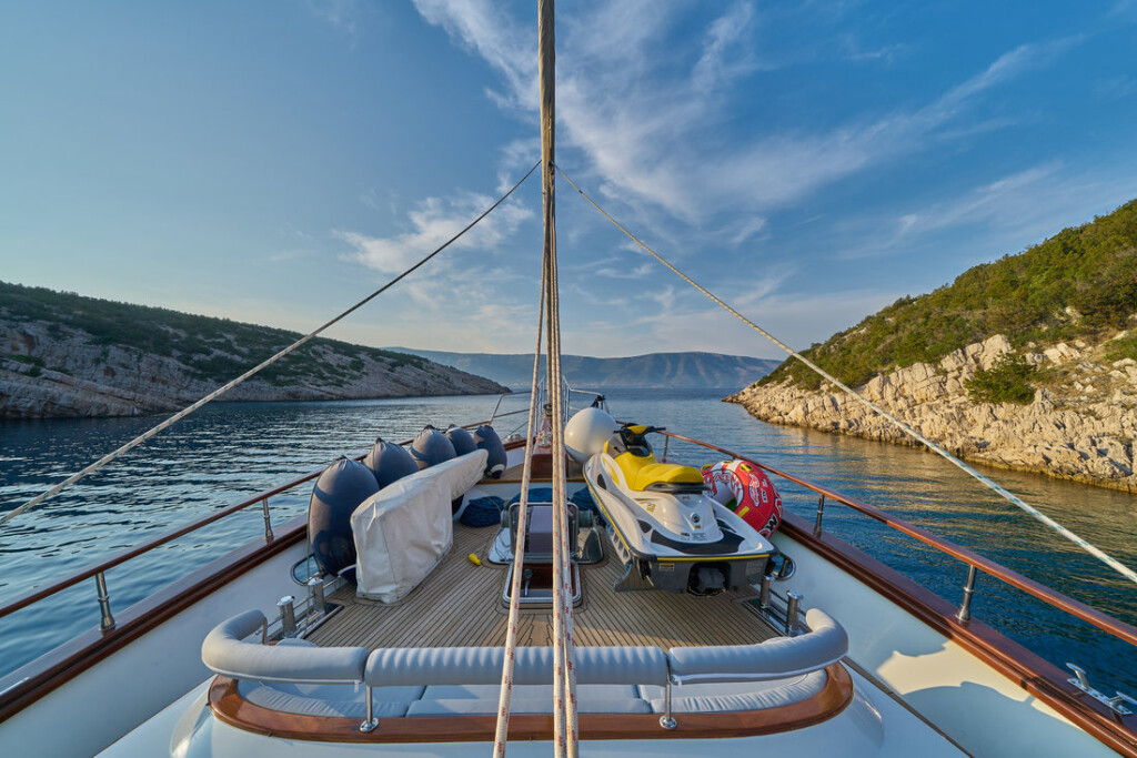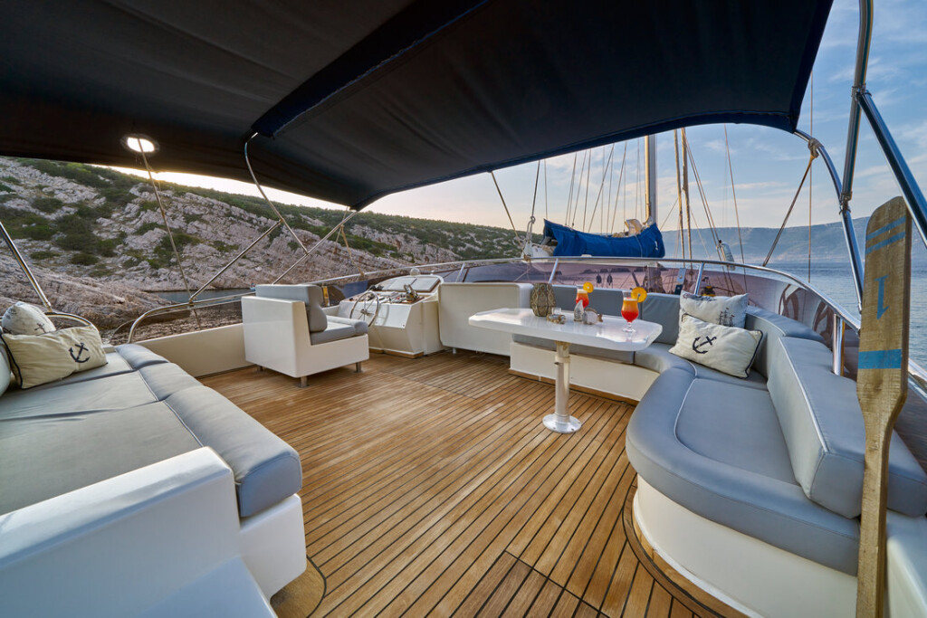 Gulet Lotus Lotus, Baujahr 2006, liegt im Split Harbour, Split & Umgebung, Kroatien vor Anker. Es verfügt über 4 Kabinen und bietet Platz für 8 Personen mit 4 Toiletten. Bettwäsche und Küchenausstattung sind im Preis inbegriffen.