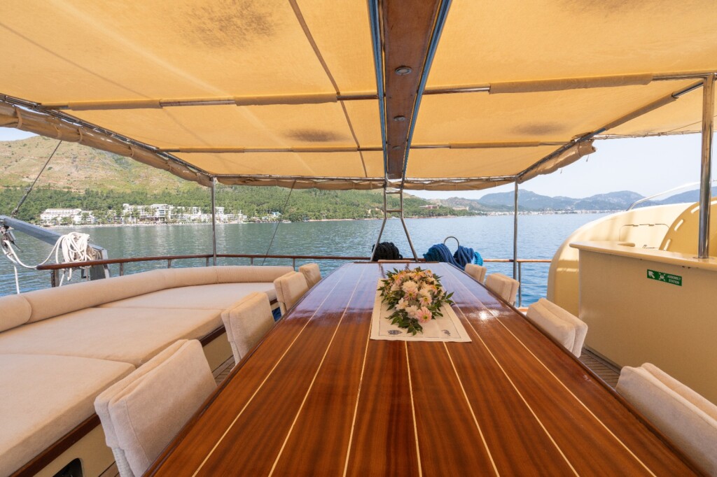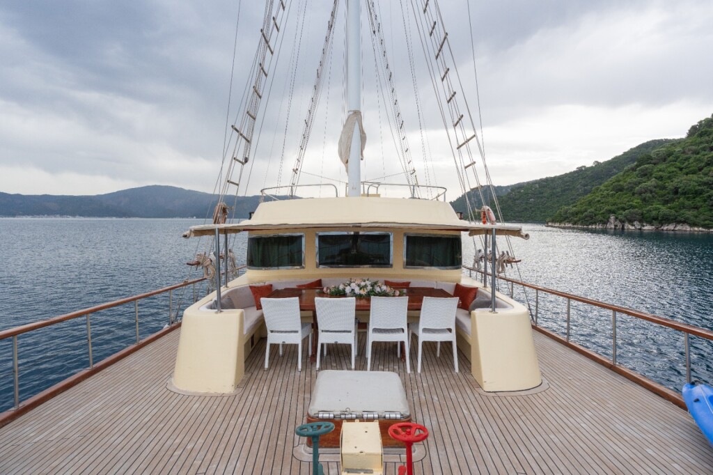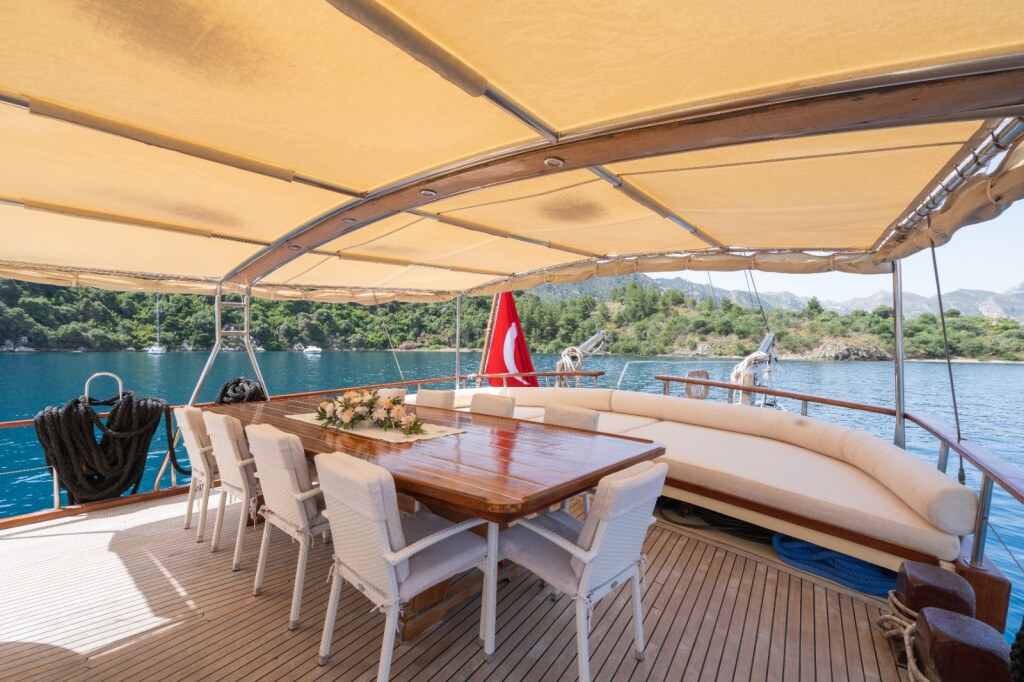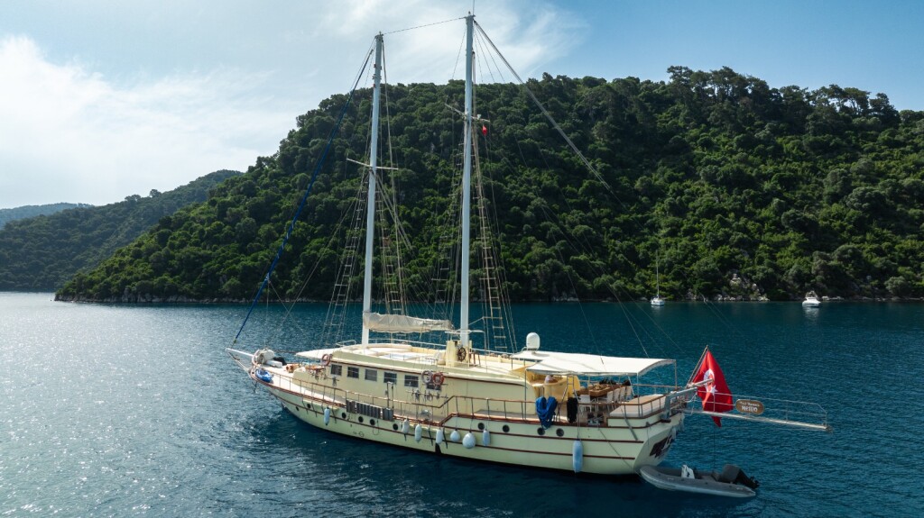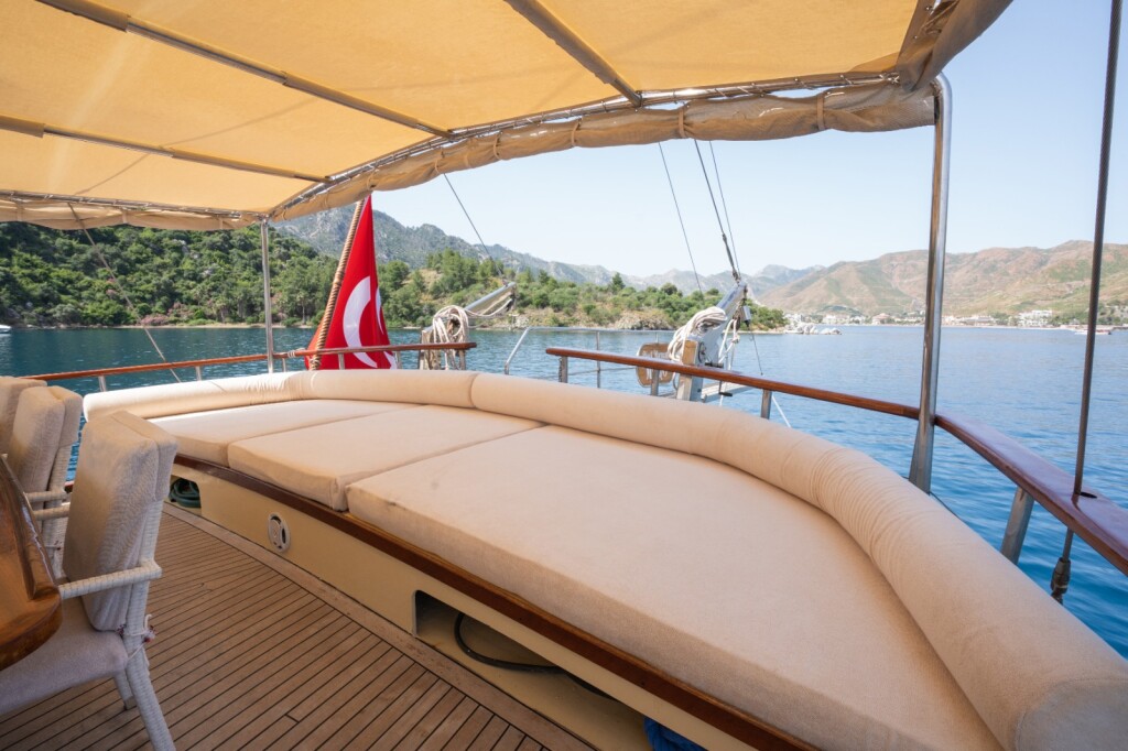 Gulet Memo Memo, Baujahr 1995, liegt im Marmaris, Netsel Marina, Aegean, Türkei vor Anker. Es verfügt über 8 Kabinen und bietet Platz für 16 Personen mit 8 Toiletten. Bettwäsche und Küchenausstattung sind im Preis inbegriffen.