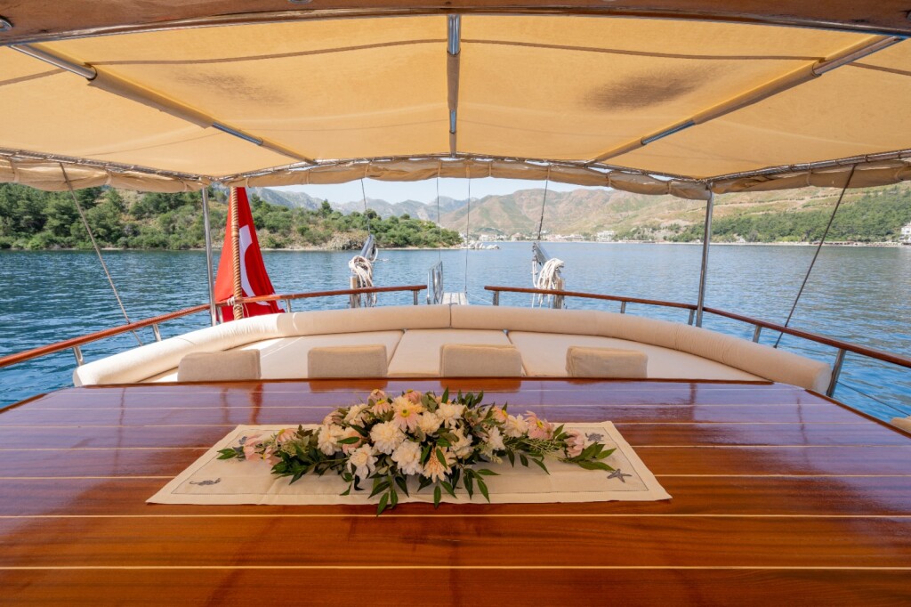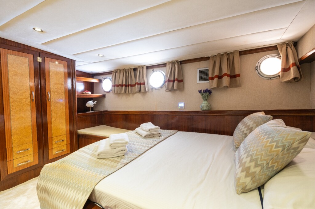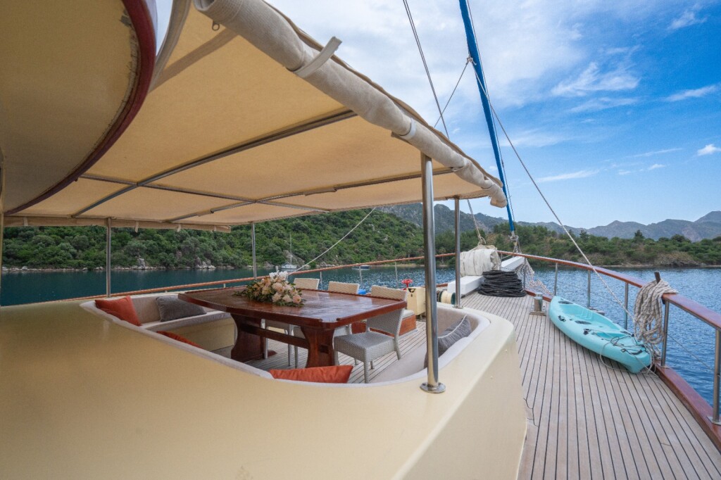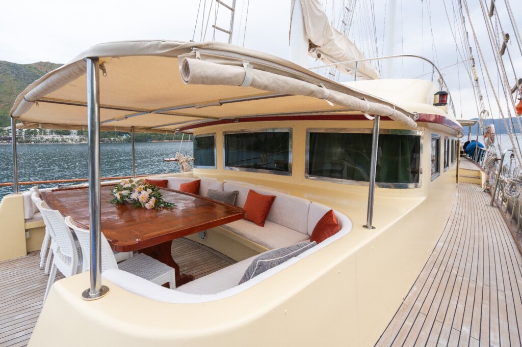 Gulet Memo Memo, Baujahr 1995, liegt im Marmaris, Netsel Marina, Aegean, Türkei vor Anker. Es verfügt über 8 Kabinen und bietet Platz für 16 Personen mit 8 Toiletten. Bettwäsche und Küchenausstattung sind im Preis inbegriffen.