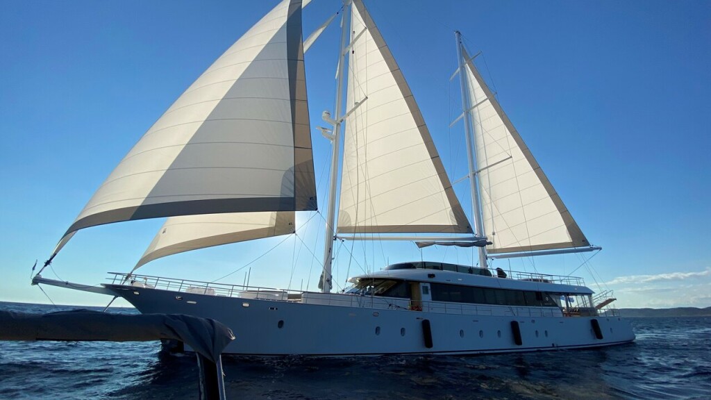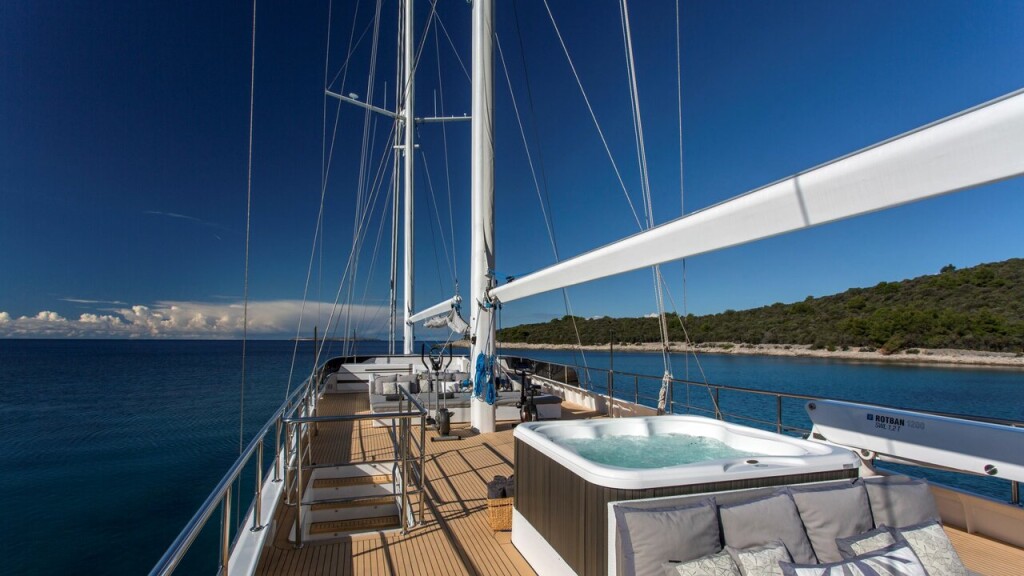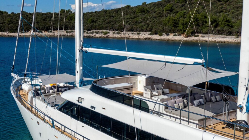 Luxus-Segelyacht MS Custom Aurum Sky M/S Aurum Sky, Baujahr 2020, liegt im ACI Marina Split, Split & Umgebung, Kroatien vor Anker. Es verfügt über 6 Kabinen und bietet Platz für 12 Personen mit 6 Toiletten. Bettwäsche und Küchenausstattung sind im Preis inbegriffen.