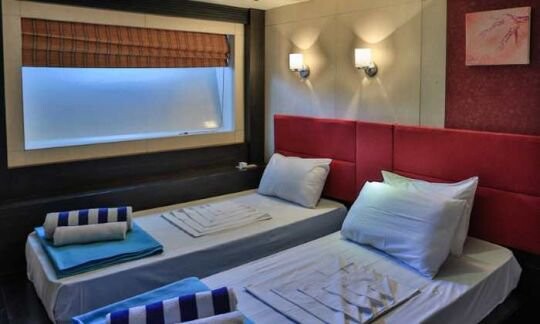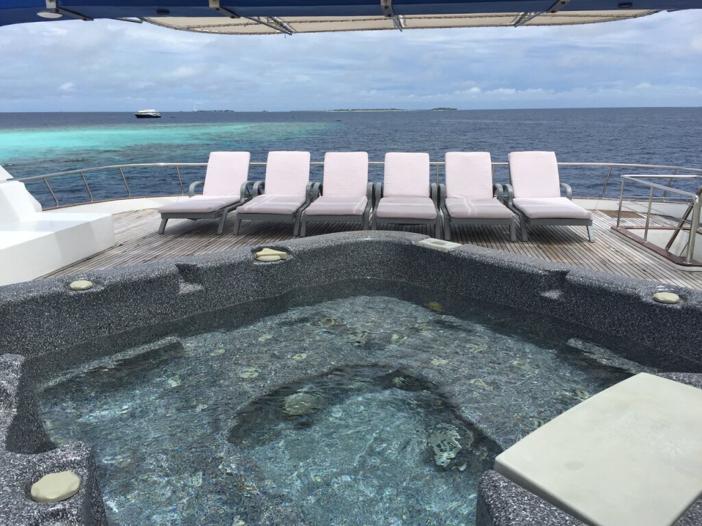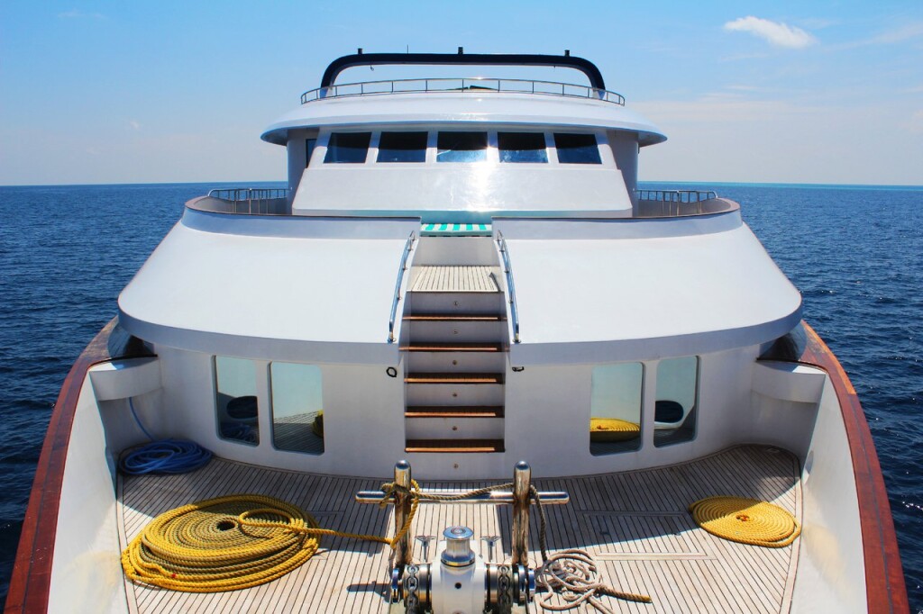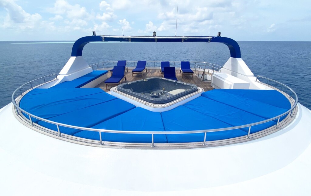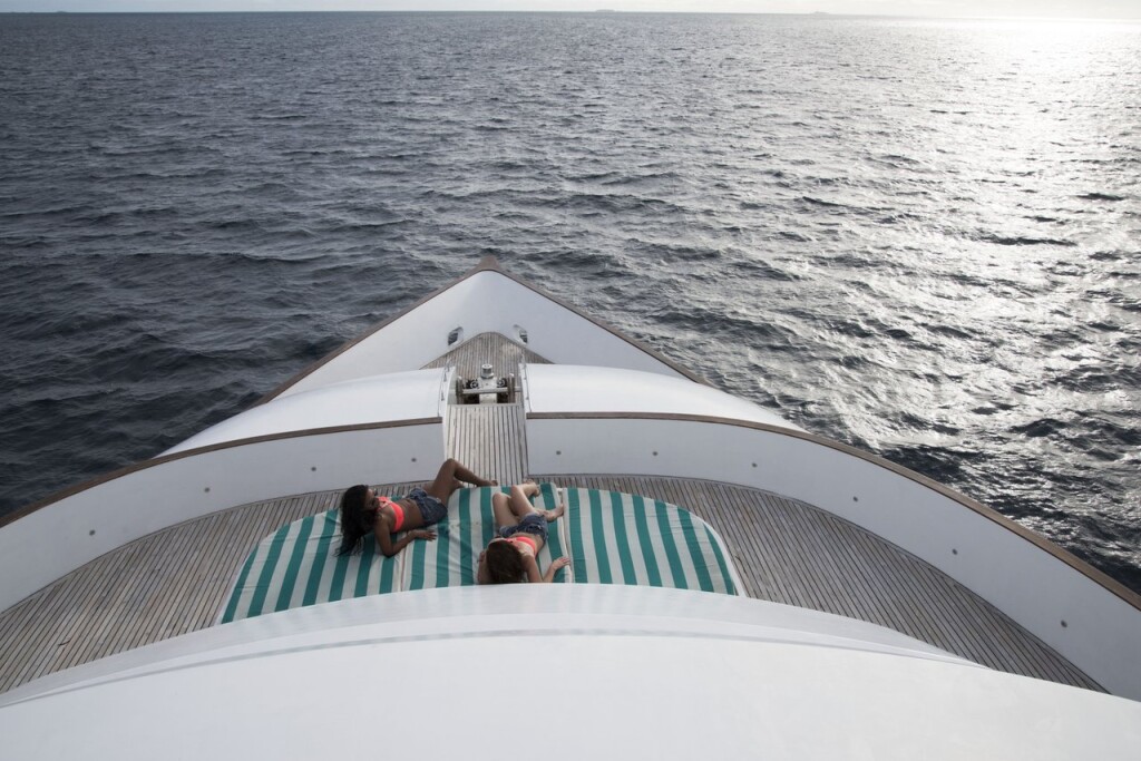 Luxus-Motoryacht MY Honors Legacy Honors Legacy, Baujahr 2012, liegt im Maldives, Male, Malediven, Malediven vor Anker. Es verfügt über 10 Kabinen und bietet Platz für 22 Personen mit 9 Toiletten. Bettwäsche und Küchenausstattung sind im Preis inbegriffen.