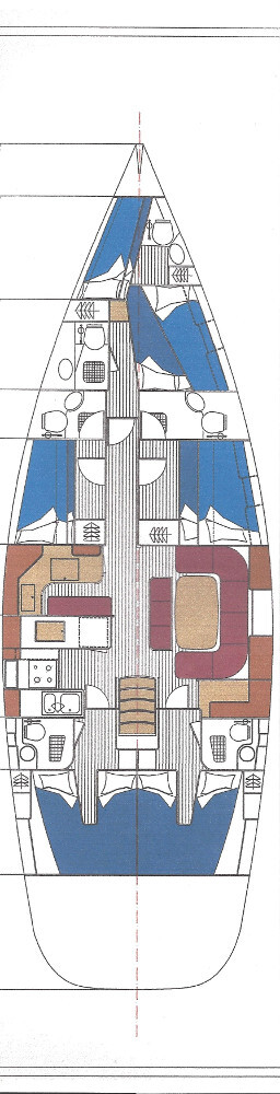 Segelyacht Ocean Star 56.1 Delfios, Baujahr 2008, liegt im Preveza Marina, Ionisches Meer, Griechenland vor Anker. Es verfügt über 5 + 1 Kabinen und bietet Platz für 10 + 1 Personen mit 5 + 1 Toiletten. Bettwäsche und Küchenausstattung sind im Preis inbegriffen.