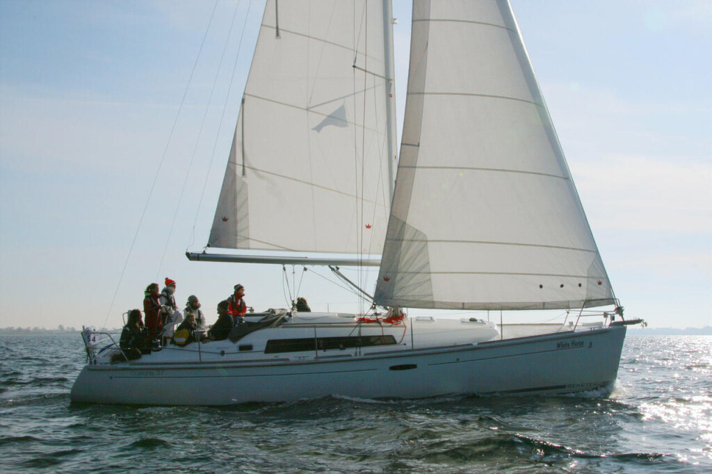 Segelyacht Oceanis 37 White Horse, Baujahr 2010, liegt im Marina Flensburg Sonwik, Schleswig-Holstein, Deutschland vor Anker. Es verfügt über 3 Kabinen und bietet Platz für 6 Personen mit 1 Toiletten. Bettwäsche und Küchenausstattung sind im Preis inbegriffen.