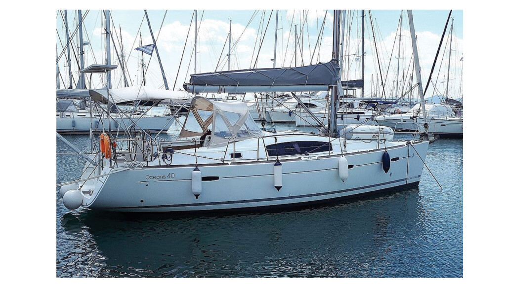 Segelyacht Oceanis 40 Toscana, Baujahr 2010, liegt im Marina Eleusis, Peloponnes, Griechenland vor Anker. Es verfügt über 3 Kabinen und bietet Platz für 6 + 2 Personen mit 2 Toiletten. Bettwäsche und Küchenausstattung sind im Preis inbegriffen.