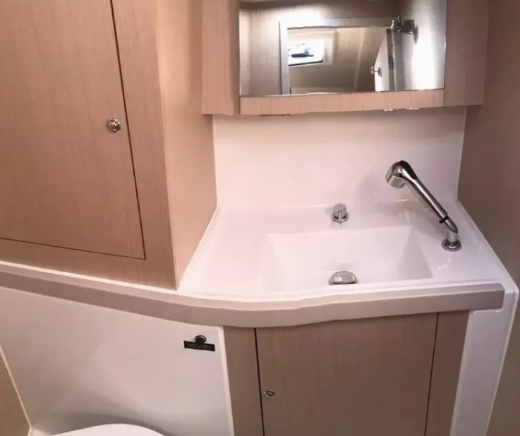 Segelyacht Oceanis 41.1 Ioanna, Baujahr 2020, liegt im Lefkas, D-Marin, Ionisches Meer, Griechenland vor Anker. Es verfügt über 3 Kabinen und bietet Platz für 6 + 2 Personen mit 2 Toiletten. Bettwäsche und Küchenausstattung sind im Preis inbegriffen.