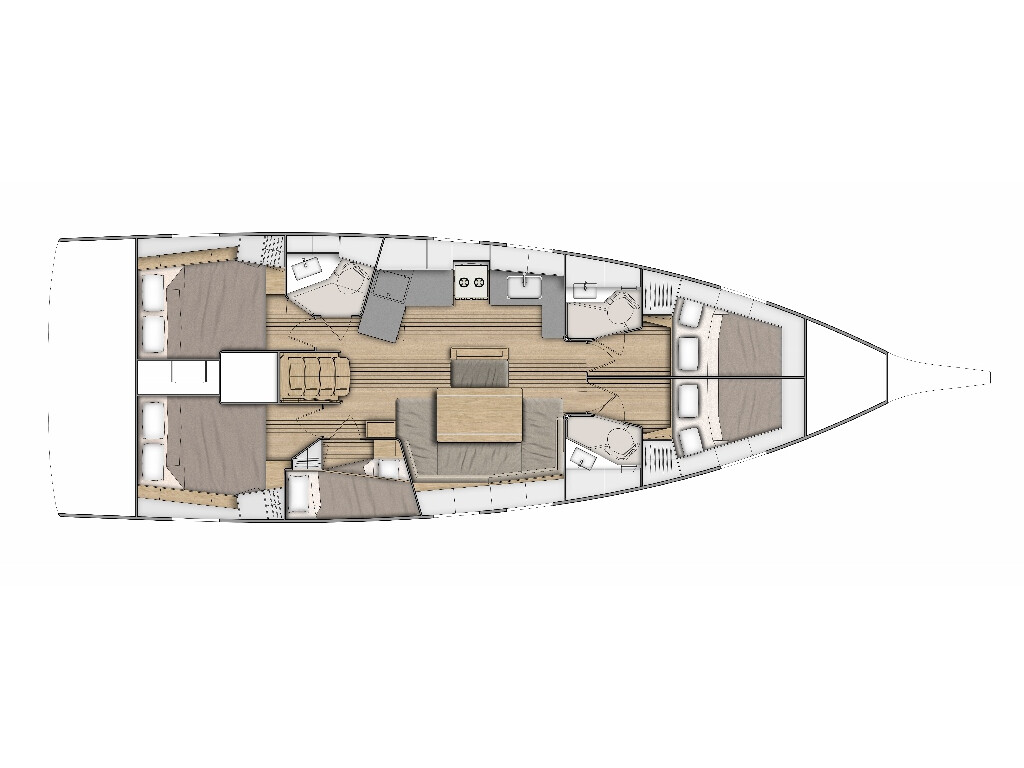 Segelyacht Oceanis 46.1 Everest, Baujahr 2021, liegt im Rogač (Šolta), Split & Umgebung, Kroatien vor Anker. Es verfügt über 5 Kabinen und bietet Platz für 10 Personen mit 3 Toiletten. Bettwäsche und Küchenausstattung sind im Preis inbegriffen.