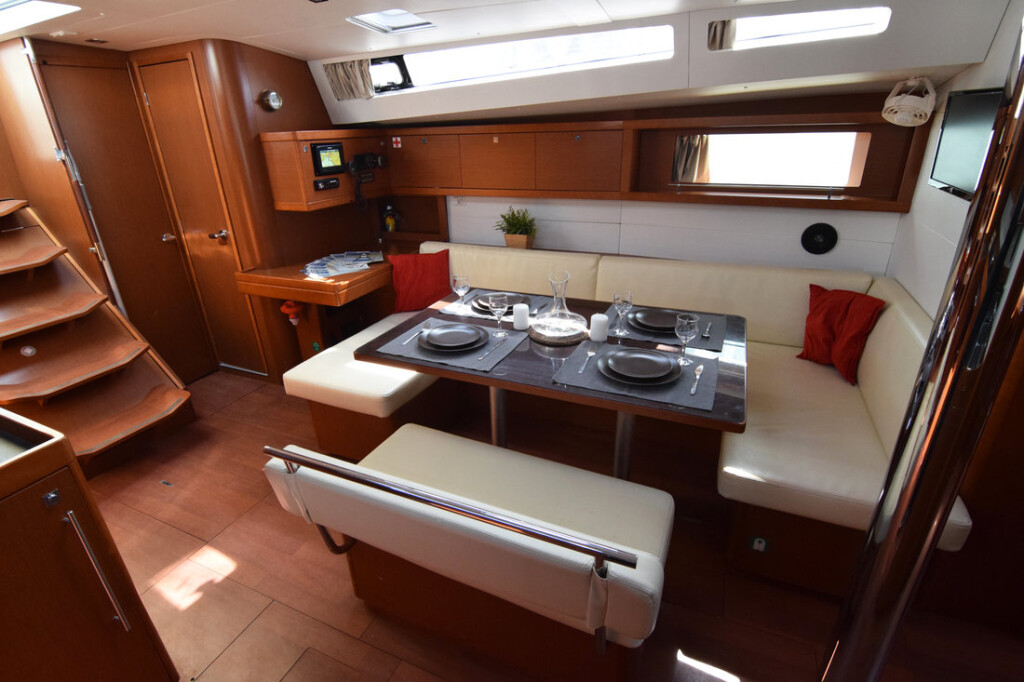 Die Oceanis 48 ist besonders beliebt aufgrund ihrer besonderen Ausstattung wie Klimaanlage, Autopilot, TV, GPS Kartenplotter, Bugstrahlruder, Solar Panel, Generator, Cockpit Kissen. Bei Fragen steht Ihnen unser Team gerne persönlich zur Verfügung!