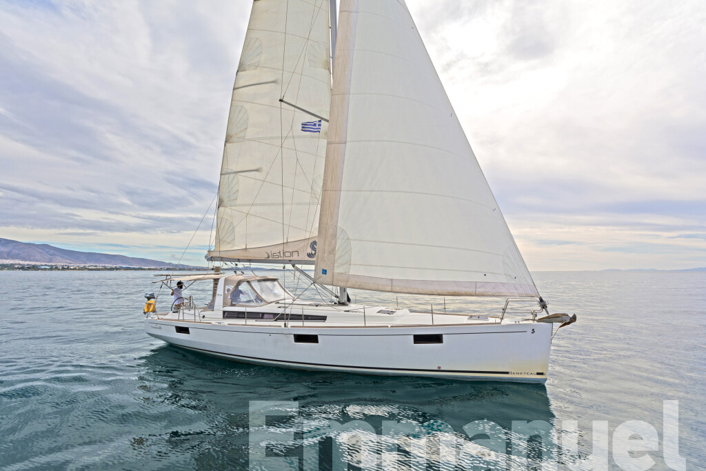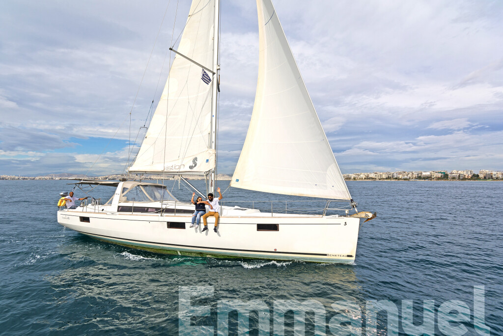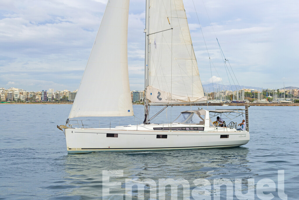 Segelyacht Oceanis 48 Jimmy's, Baujahr 2014, liegt im Athens, Alimos marina, Peloponnes, Griechenland vor Anker. Es verfügt über 5 Kabinen und bietet Platz für 10 + 2 Personen mit 3 Toiletten. Bettwäsche und Küchenausstattung sind im Preis inbegriffen.