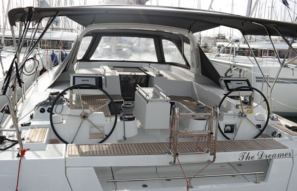 Segelyacht Oceanis 55 Dreamer, Baujahr 2016, liegt im Corfu, Gouvia Marina, Ionisches Meer, Griechenland vor Anker. Es verfügt über 5 + 1 Kabinen und bietet Platz für 10 + 2 Personen mit 3 + 1 Toiletten. Bettwäsche und Küchenausstattung sind im Preis inbegriffen.