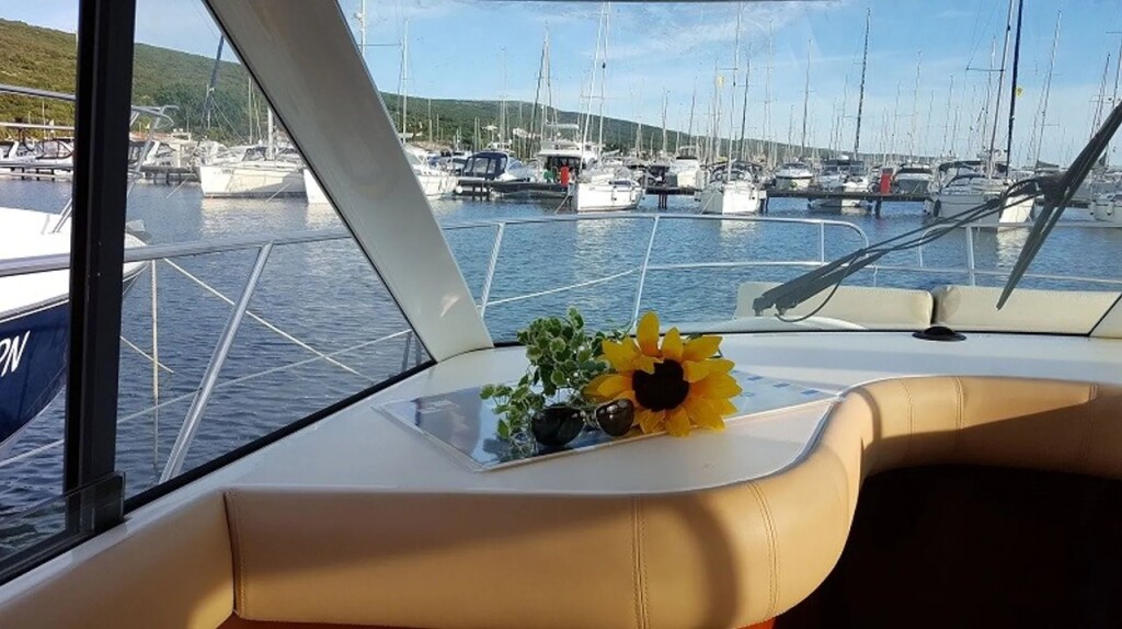 Motoryacht Prestige 36 Fortuna, Baujahr 2009, liegt im Marina Punat, Krk, Kvarner, Kroatien vor Anker. Es verfügt über 2 Kabinen und bietet Platz für 4 Personen mit 1 Toiletten. Bettwäsche und Küchenausstattung sind im Preis inbegriffen.