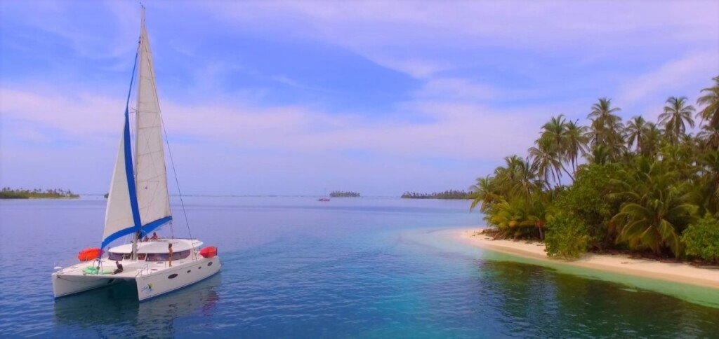 Katamaran Salina 48 Zenith, Baujahr 2008, liegt im San Blas, Corazon de Jesus, San Blas, Panama vor Anker. Es verfügt über 4 + 2 Kabinen und bietet Platz für 8 + 2 Personen mit 4 Toiletten. Bettwäsche und Küchenausstattung sind im Preis inbegriffen.