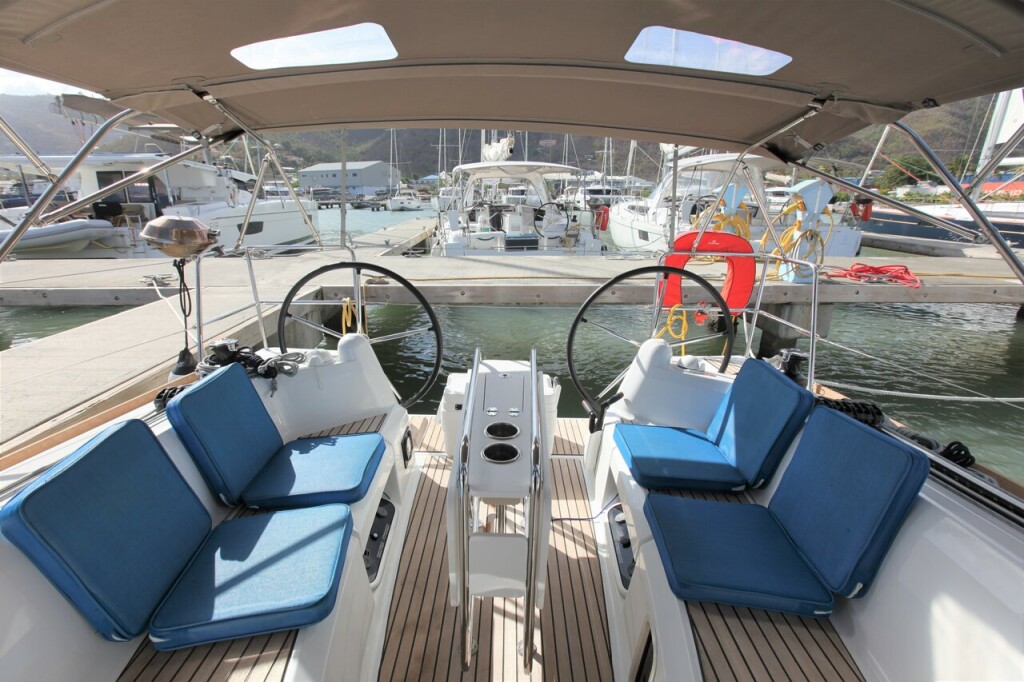 Segelyacht Sun Odyssey 349 Naya, Baujahr 2019, liegt im BVI, Tortola, Ritter House Marina, British Virgin Islands, Britische Jungferninseln (BVI) vor Anker. Es verfügt über 2 Kabinen und bietet Platz für 4 + 1 Personen mit 1 Toiletten. Bettwäsche und Küchenausstattung sind im Preis inbegriffen.