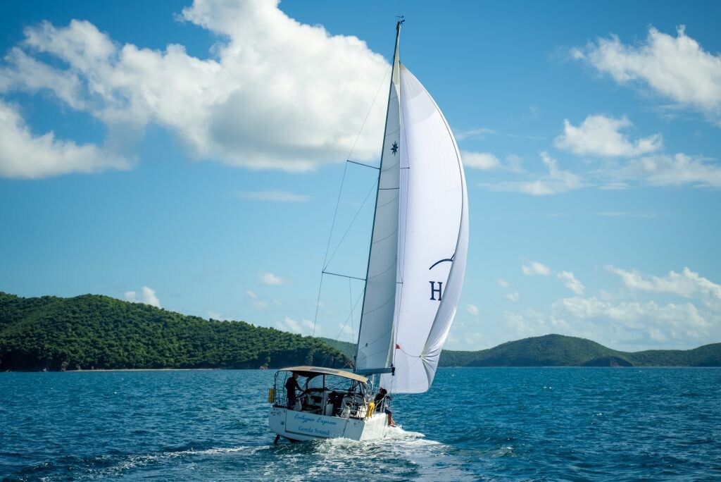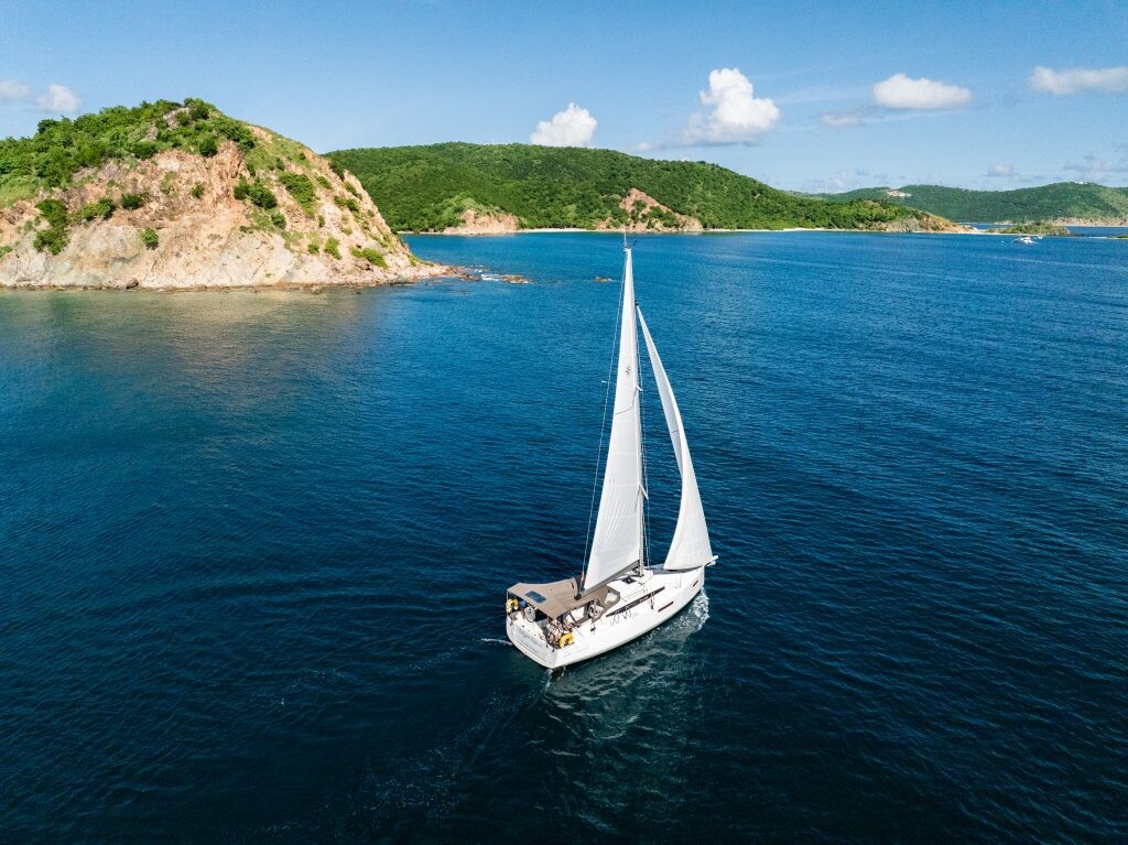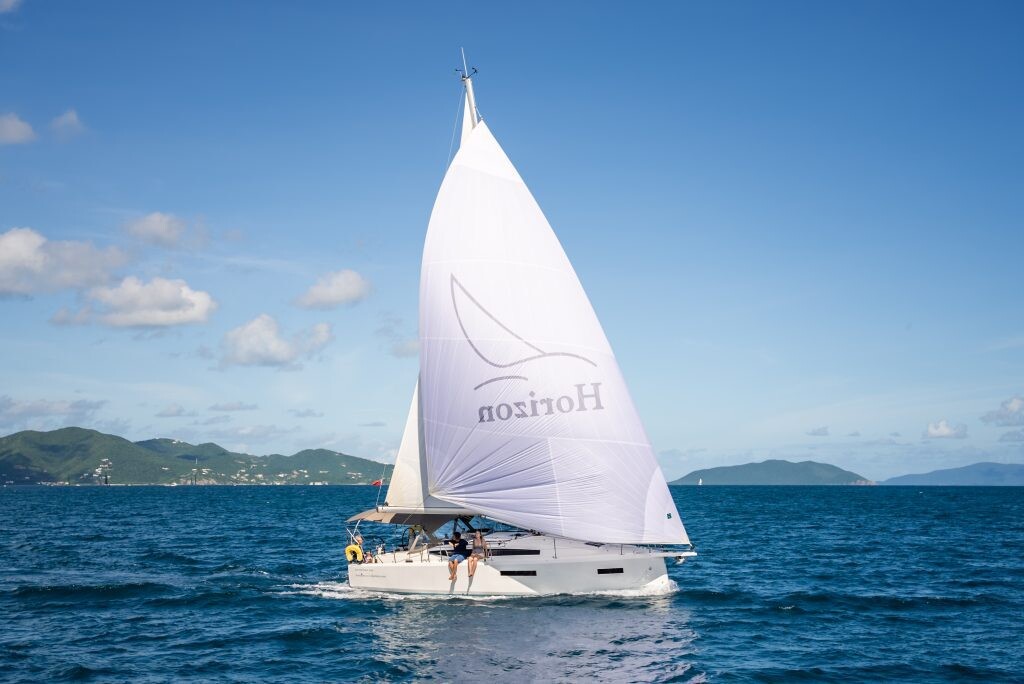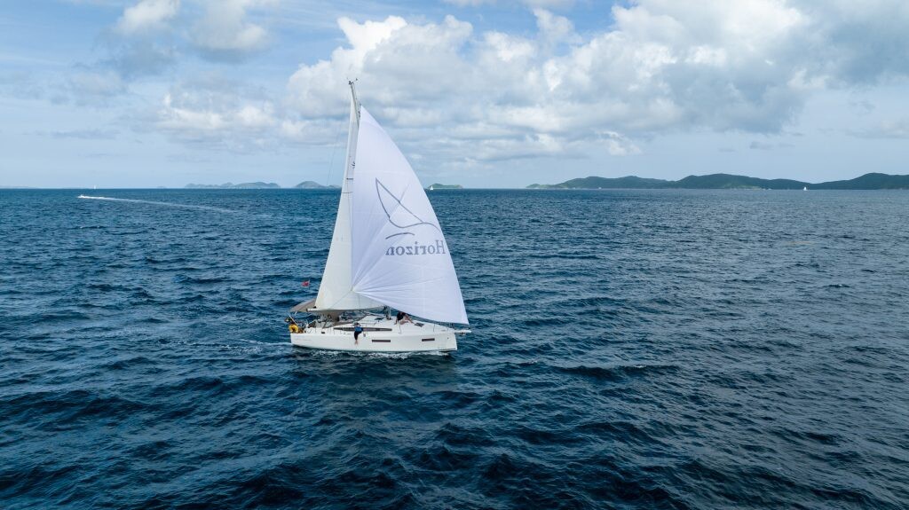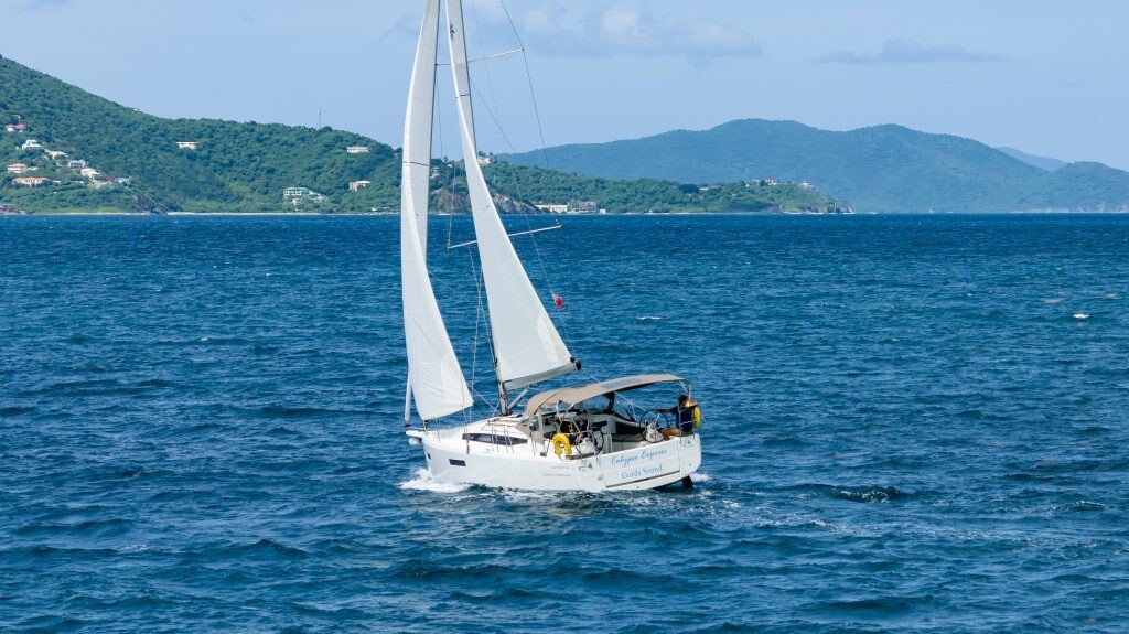 Segelyacht Sun Odyssey 380 Calypso Express, Baujahr 2024, liegt im BVI, Tortola, Nanny Cay Marina, British Virgin Islands, Britische Jungferninseln (BVI) vor Anker. Es verfügt über 3 Kabinen und bietet Platz für 6 Personen mit 2 Toiletten. Bettwäsche und Küchenausstattung sind im Preis inbegriffen.